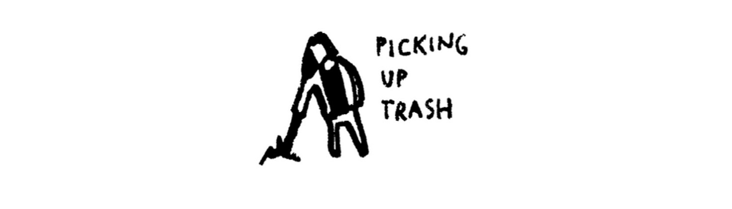 I spied volunteers picking up trash. A couple of teenagers were being led by an older person to help them spot trash and separate it appropriately for disposal.
