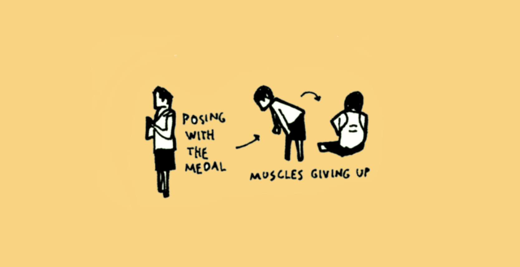 A minute later, they were bent over, and soon afterwards sitting on the ground to massage muscles that had finally given up.