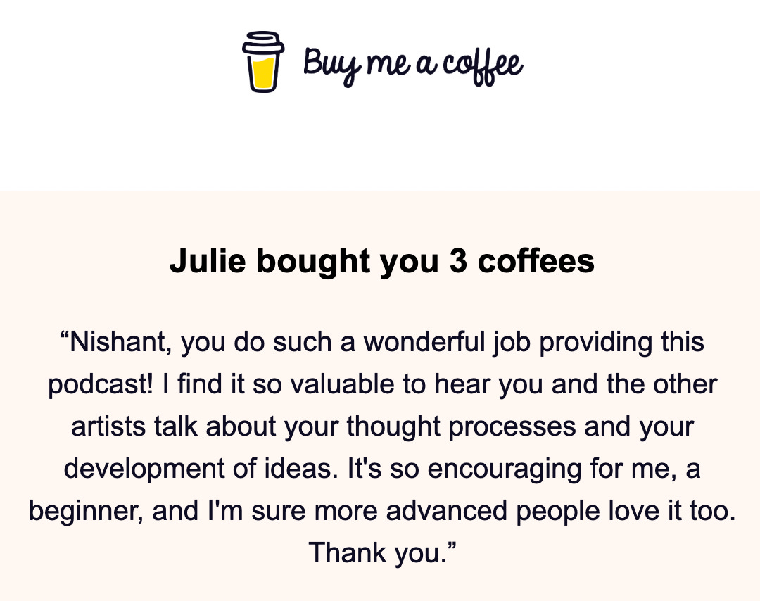 I love to hear back from listeners of the show. Recently, Julie stopped by to buy me some coffee and leave a wonderful note.