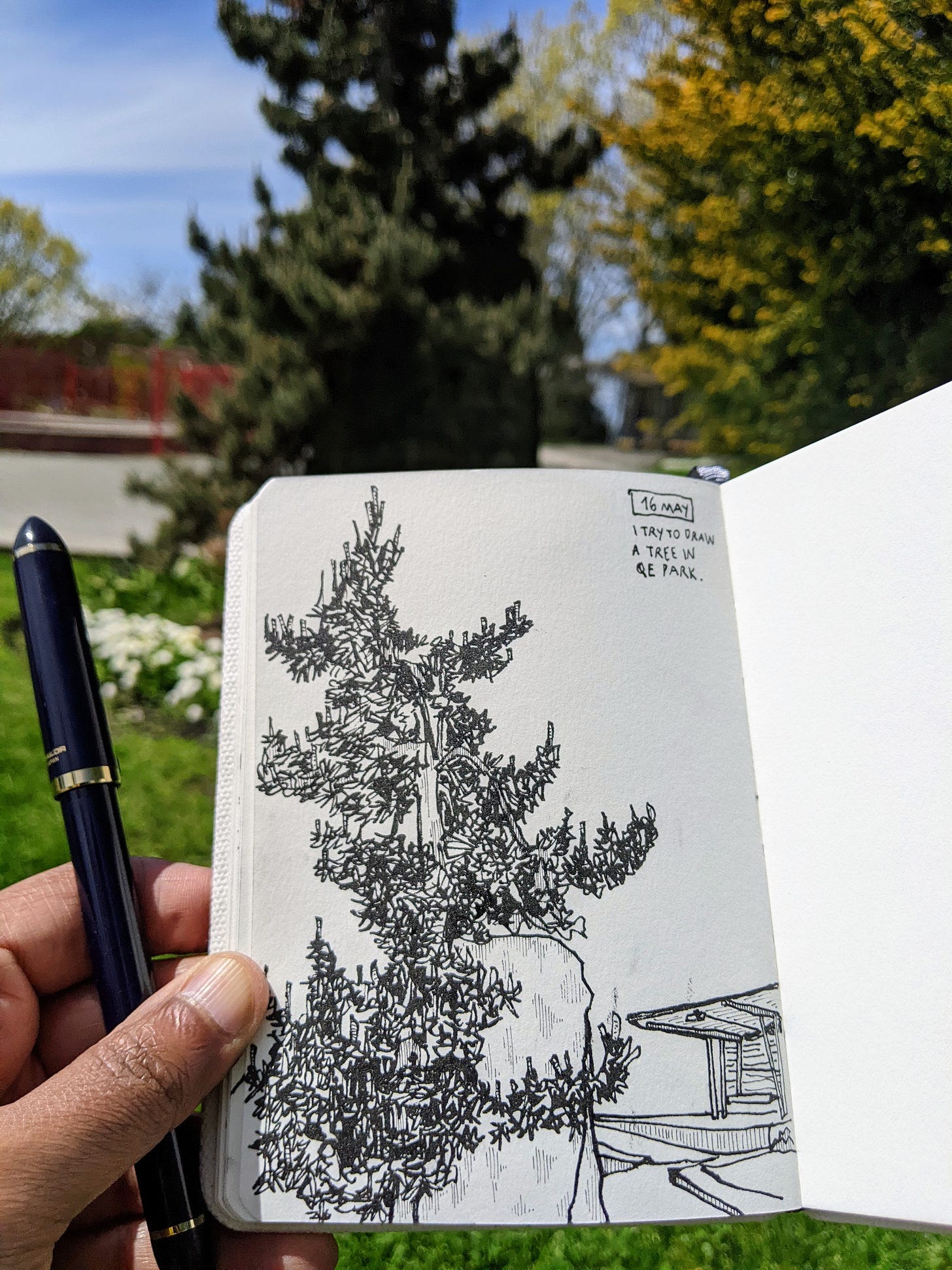 I took my fude nib pen out for a walk in the sunshine. We found a tree.