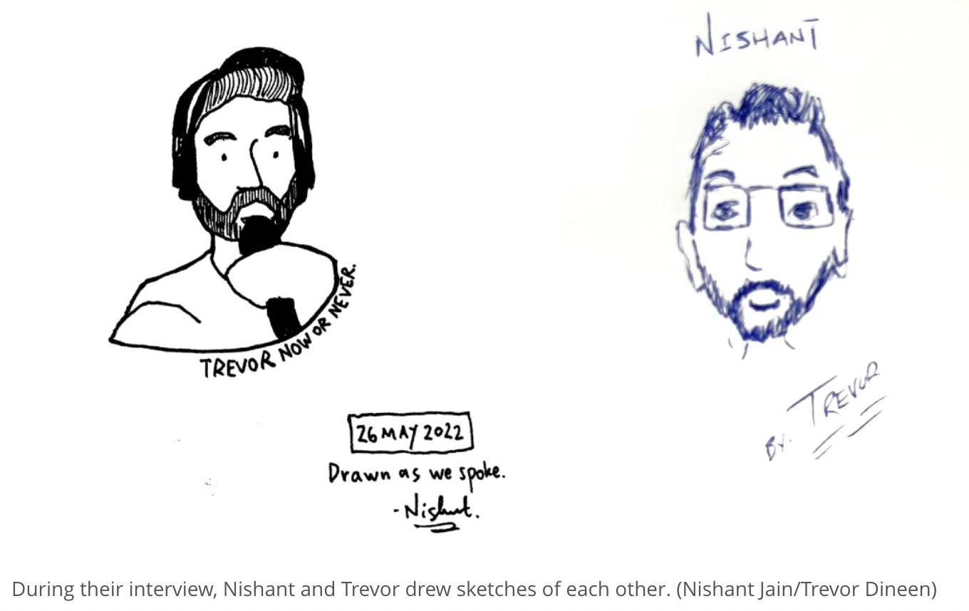 👨🏻🎨 Mike asks if moving around has helped Nishant create more interesting art. Nishant speaks about the creative challenge of finding inspiration in rural Wisconsin.