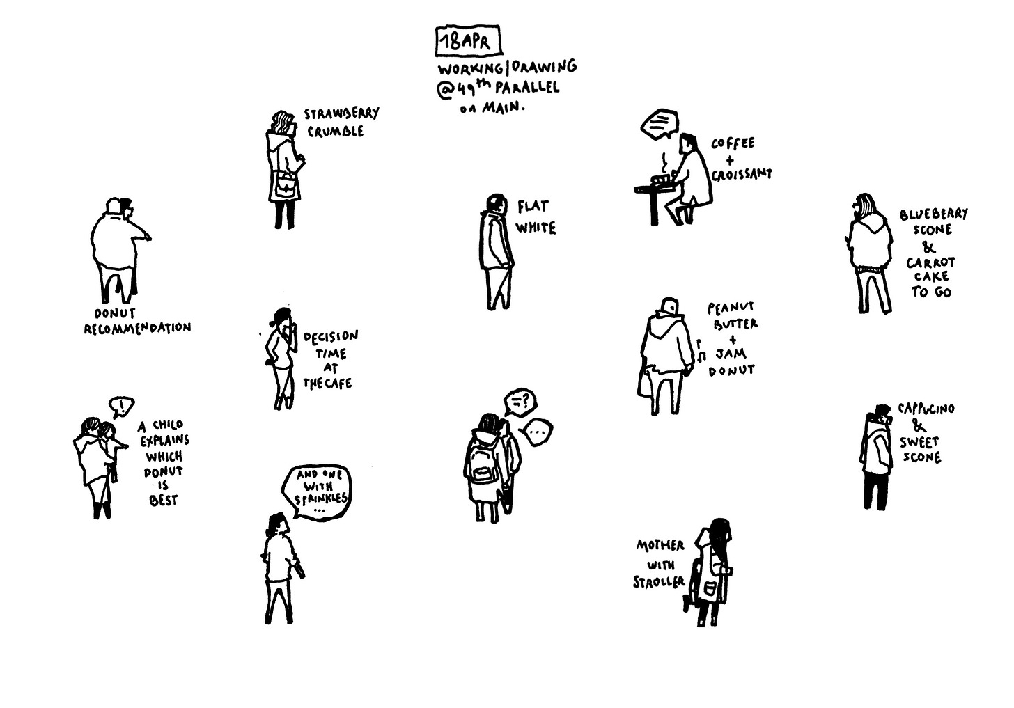 I watched the videos and made notes at 49th Parallel Coffee Roasters on Main St. Whenever my attention dropped, I looked up at the people lining up to order donuts.