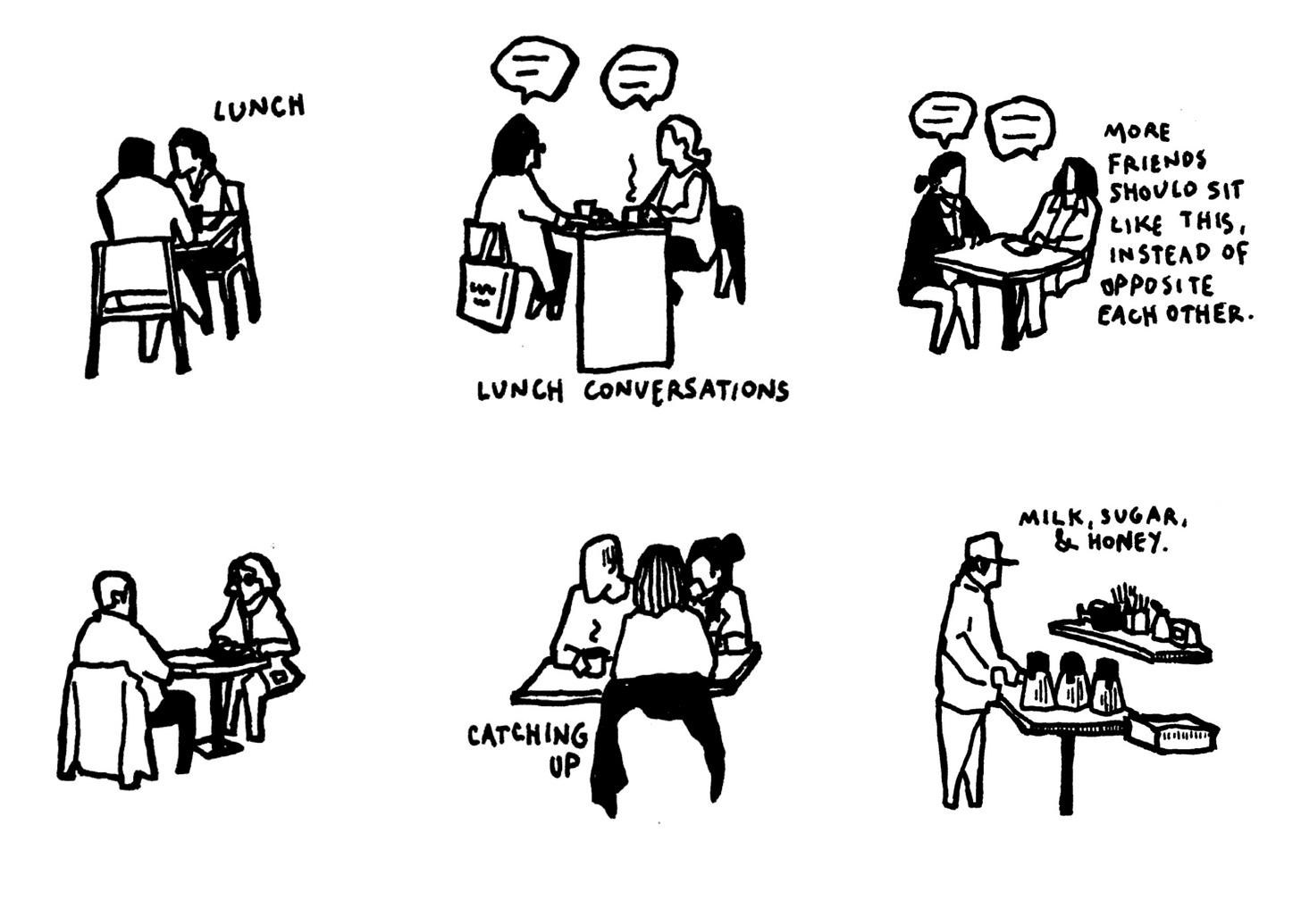 I let the conversation wash over me while I observed people at the cafe. It was lunchtime. Every table was its own private island.