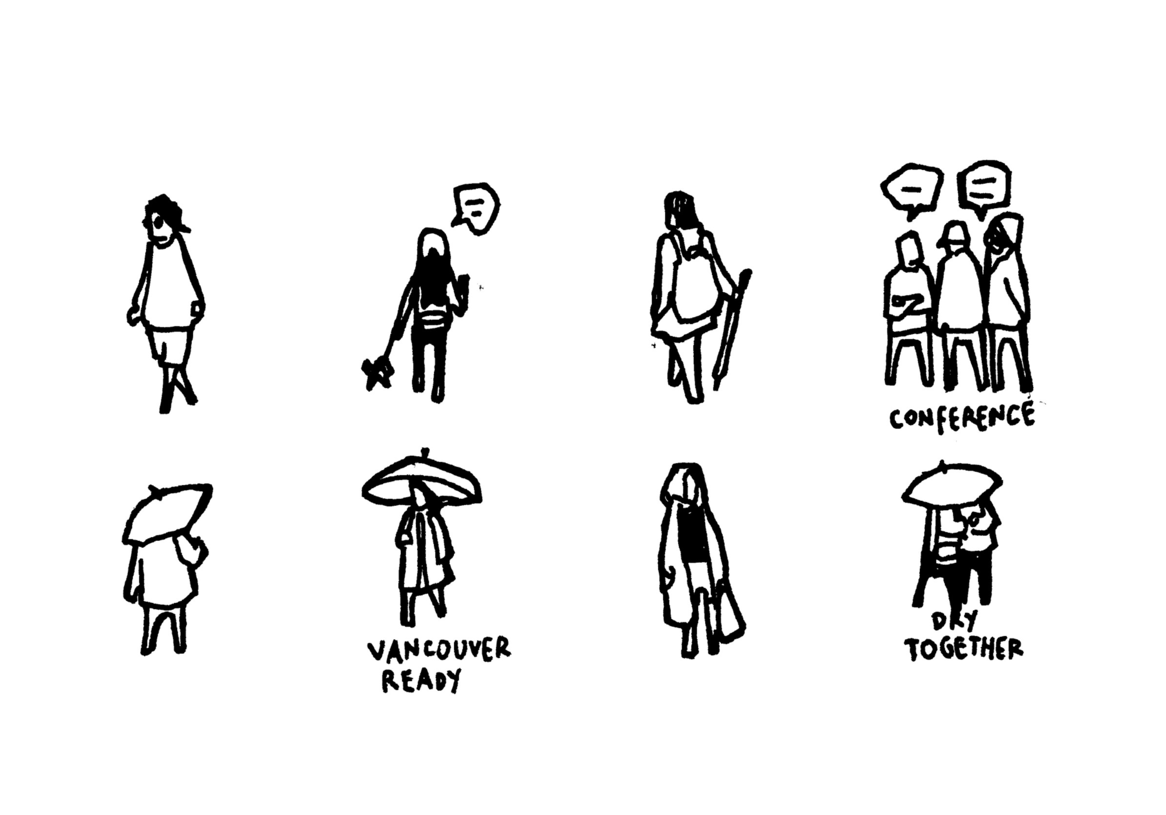 How do things change in your world, dear reader, when dark clouds cover the sky? Take these tiny people, of sunny days and grey, and tell their tiny story.