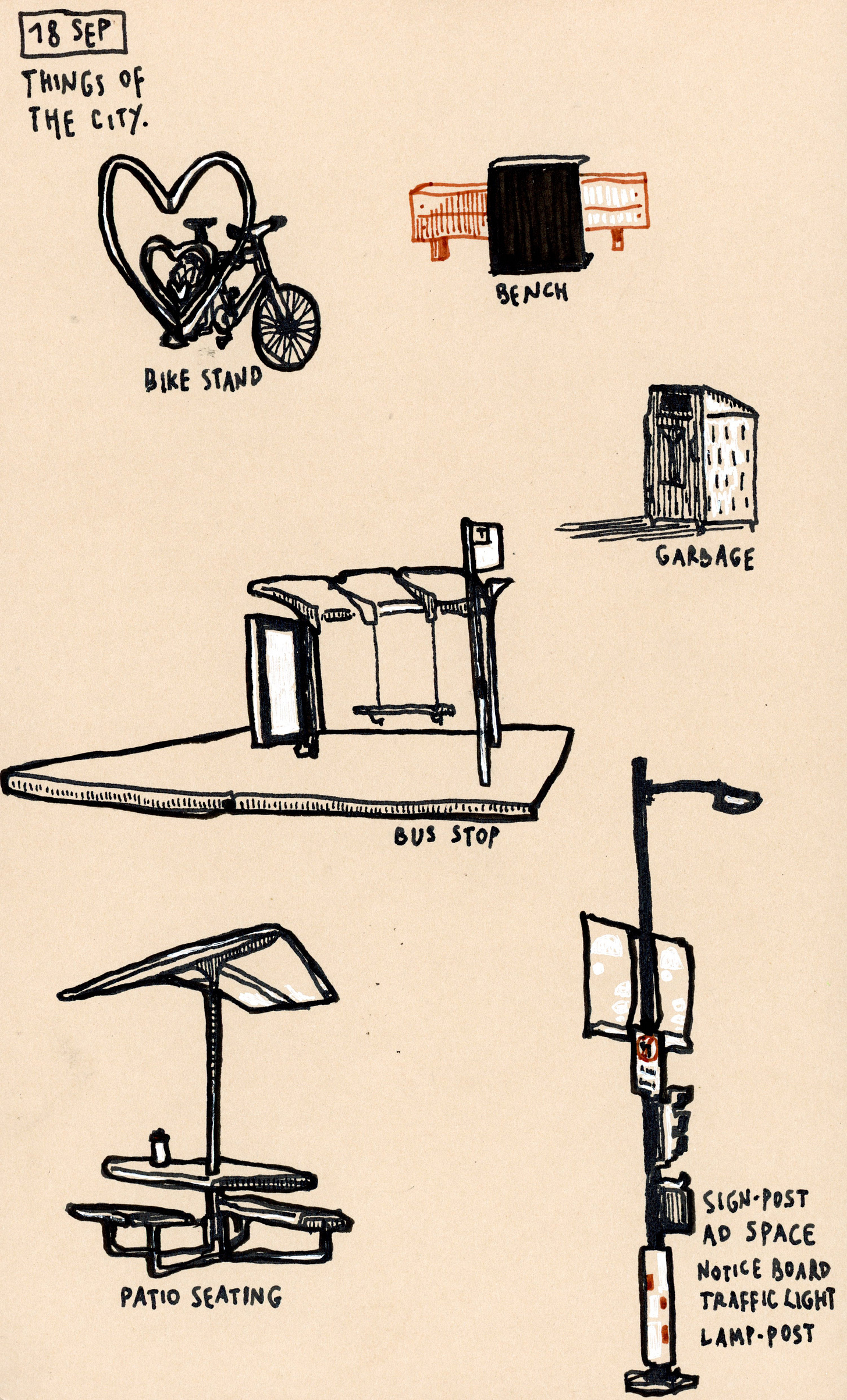 I took my coffee - having recently given my favour to soy-milk lattes - and went to the patio and sat under the blue sky with my back to the sun. At the intersection and around lay scattered these various things of the city.