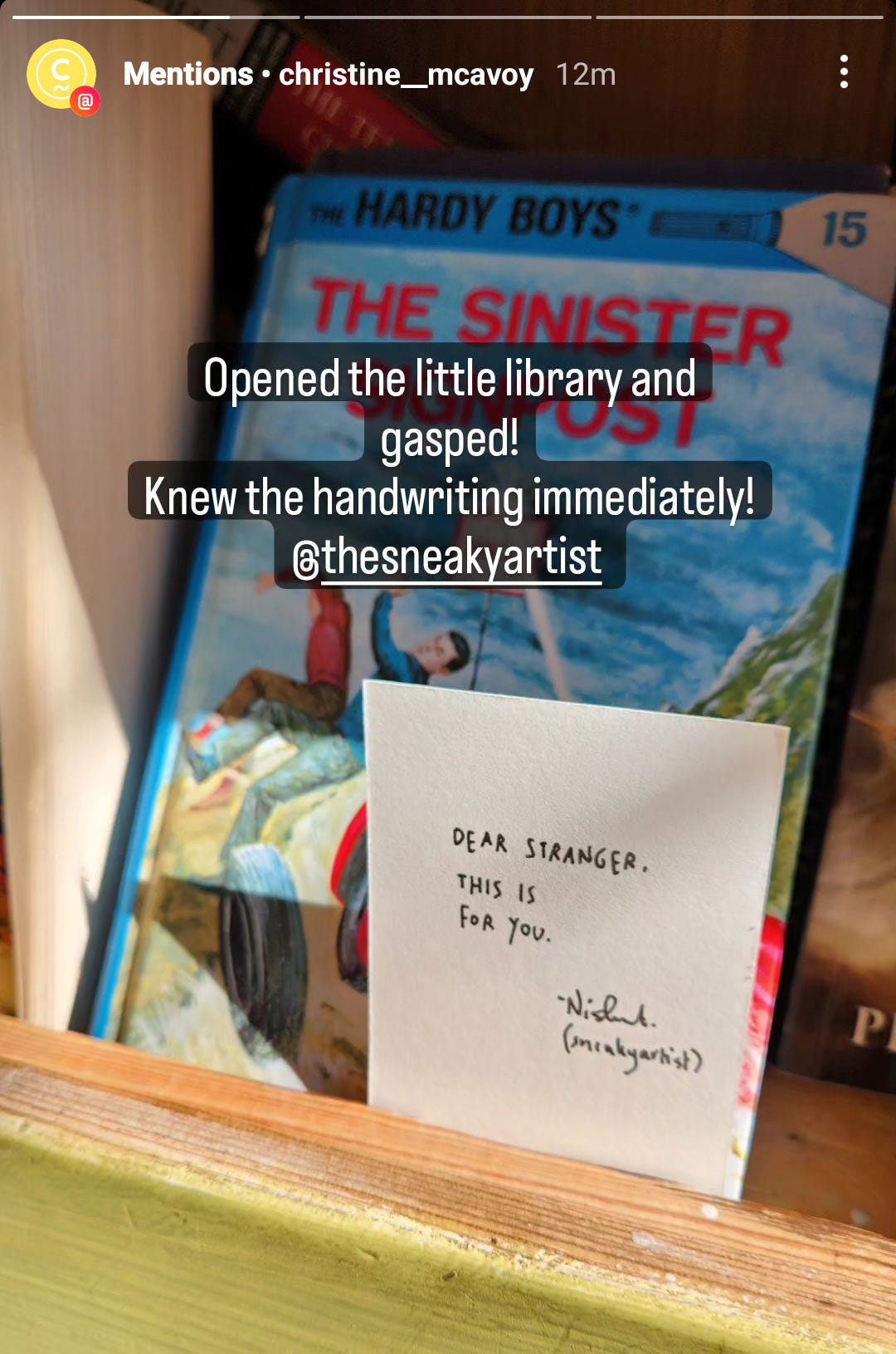 But this year I took it another step forward. Throughout the year, I left drawings at various cafes and free libraries in Vancouver. I do not know who found them. I do not know where the drawings went. I did not try to find out. I have learned there is much to gain from this kind of renunciation.