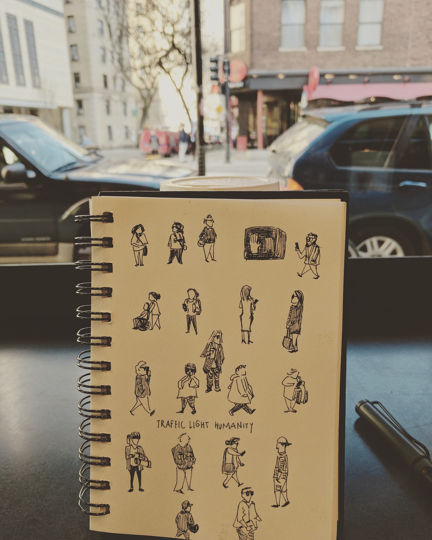 When I picked up a sketchbook and headed outside, I was running away from my desk. But I was also chasing my curiosity for these crazy Americans. When I started drawing with a fountain pen, I was distracting myself from a writer’s block. But I was also tired of chastising myself over tiny mistakes, and all this poisonous perfectionism. When I started drawing from observation, I was deliberately not thinking about writing. But I also wanted to learn to draw.