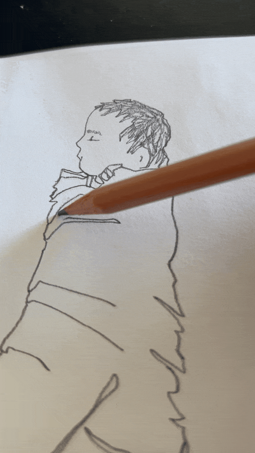 Lines and shapes, and sounds. I try to remember that. So while I draw, I listen too. His breathing, soft snores, and the first cry when he wakes.