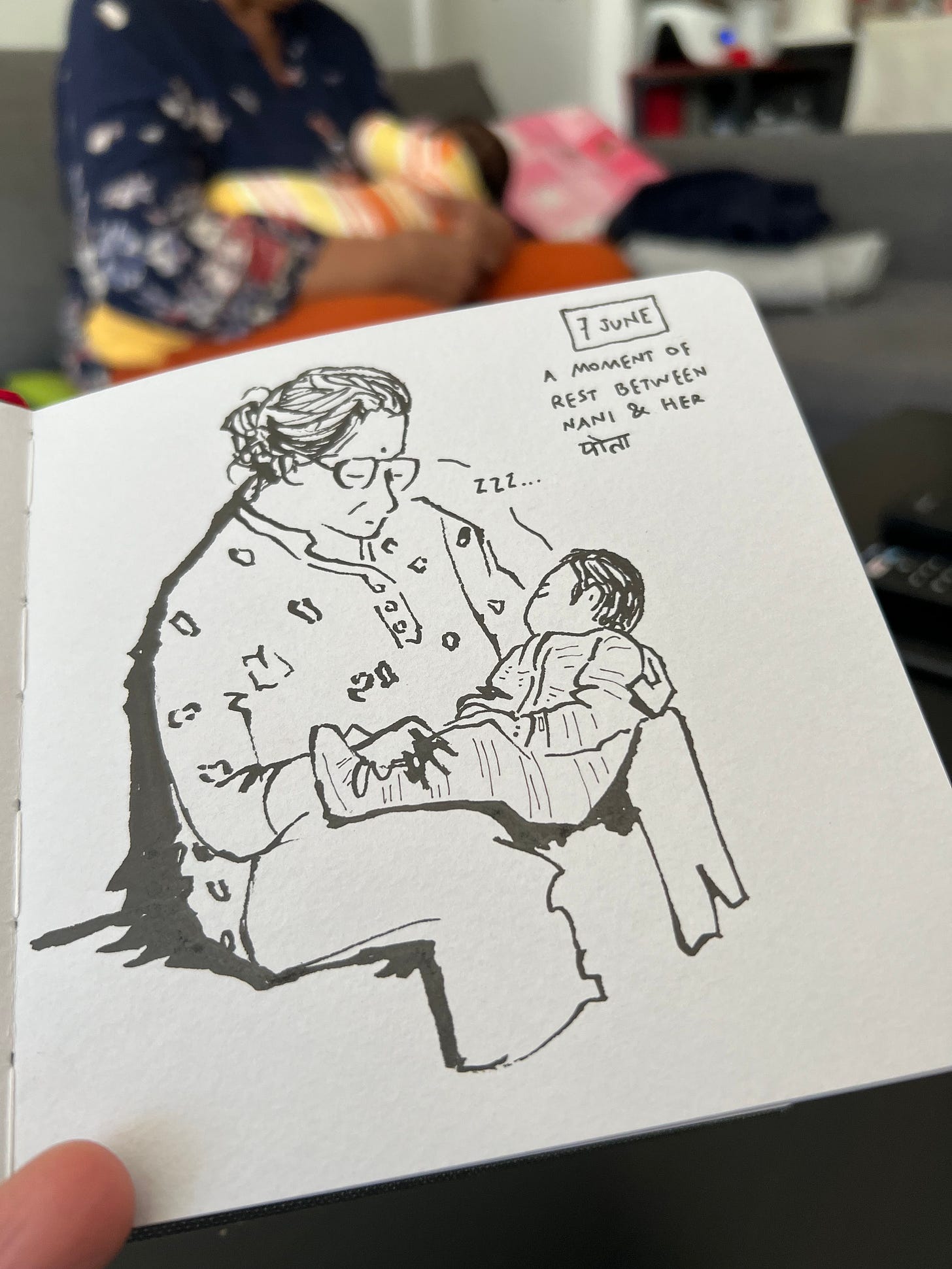 In today’s post, a quiet moment between Rohan and his (maternal) grandma, or नानी (naa-ni).