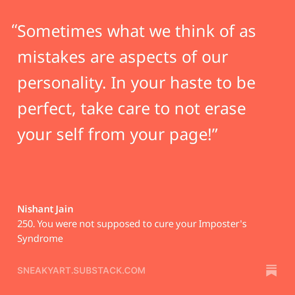 Did you read last week’s post about the Imposter Syndrome? I argue how the pursuit of perfectionism can be a double-edged sword, and why anything that stops you from creating is a bad thing.