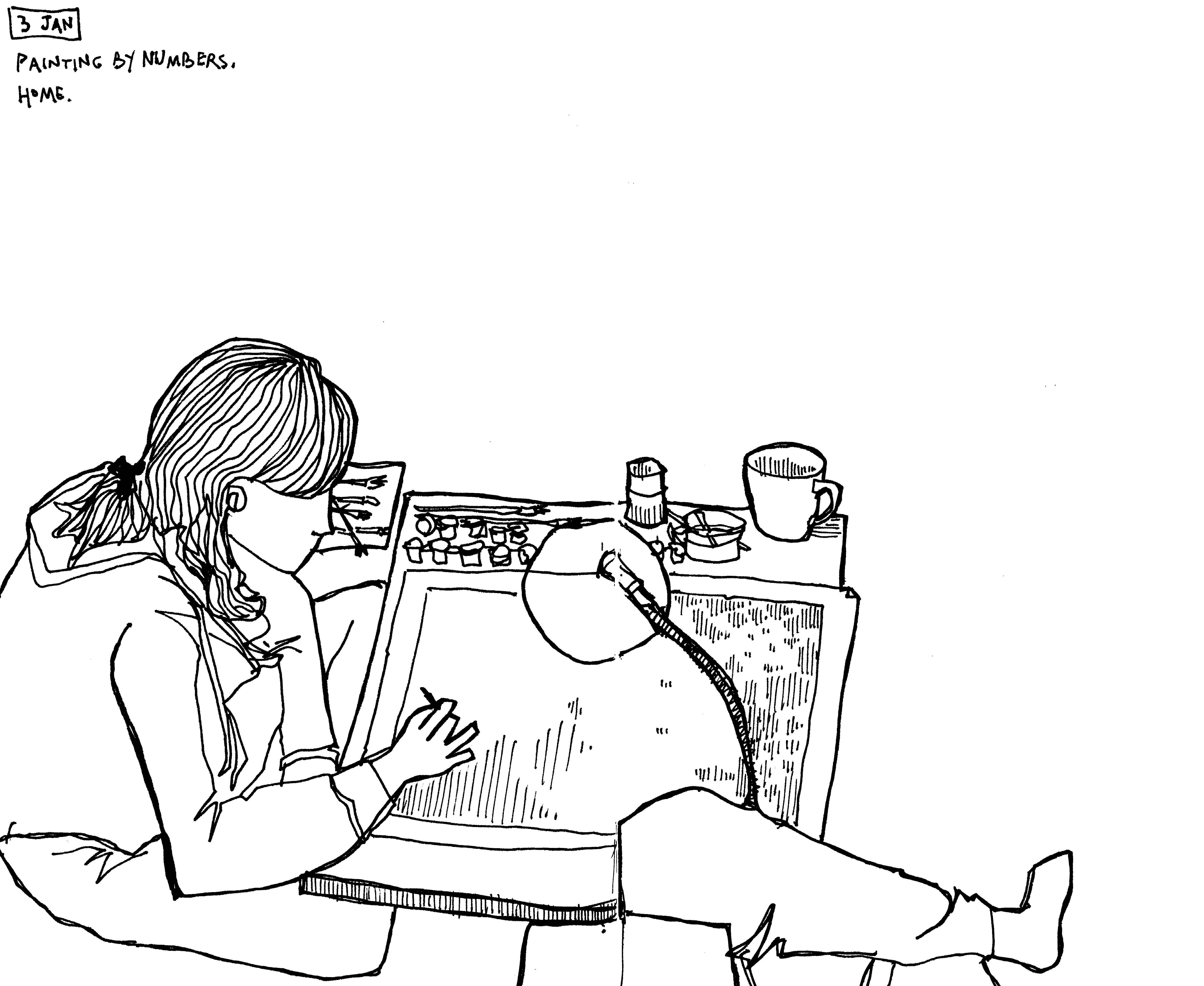 The wife-person has nearly completed a “Paint by Numbers” kit. Here is a drawing from when she was mid-way. It is a LOT of work!