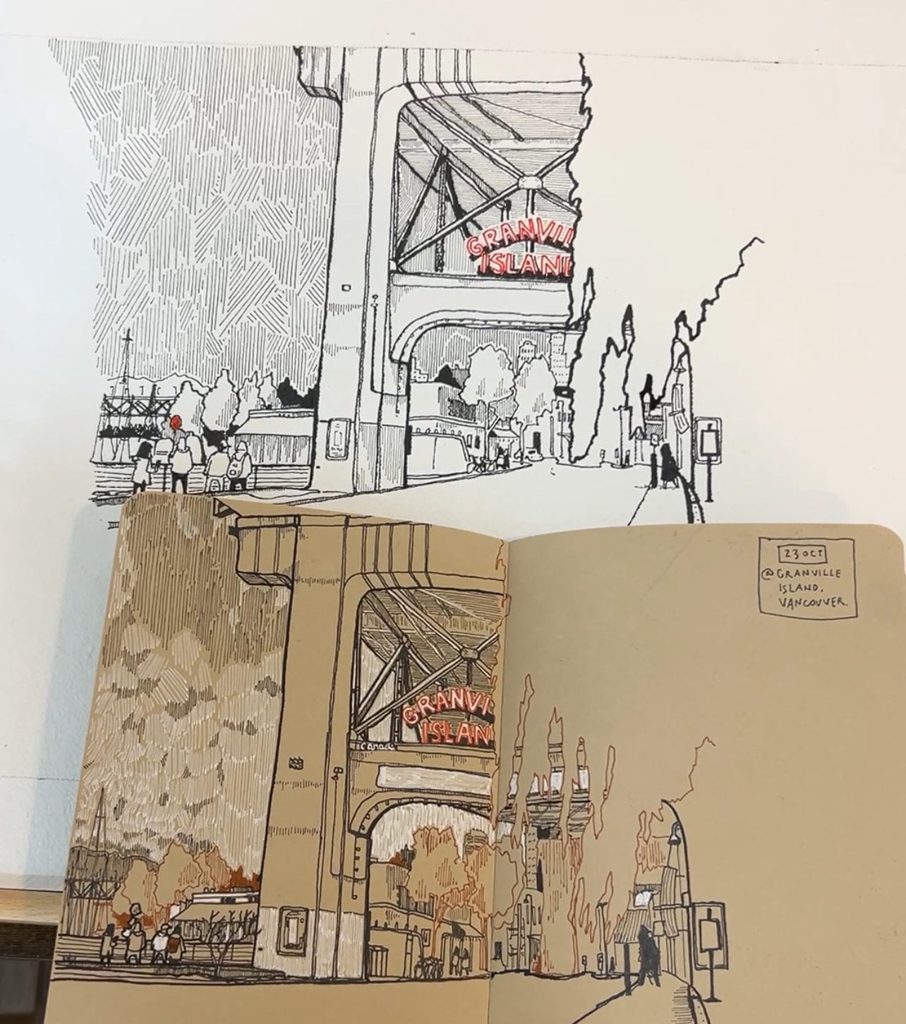 But the next morning, looking at it with fresh eyes, I suddenly saw a way to do it with black ink. That is where the live session (video above) begins.