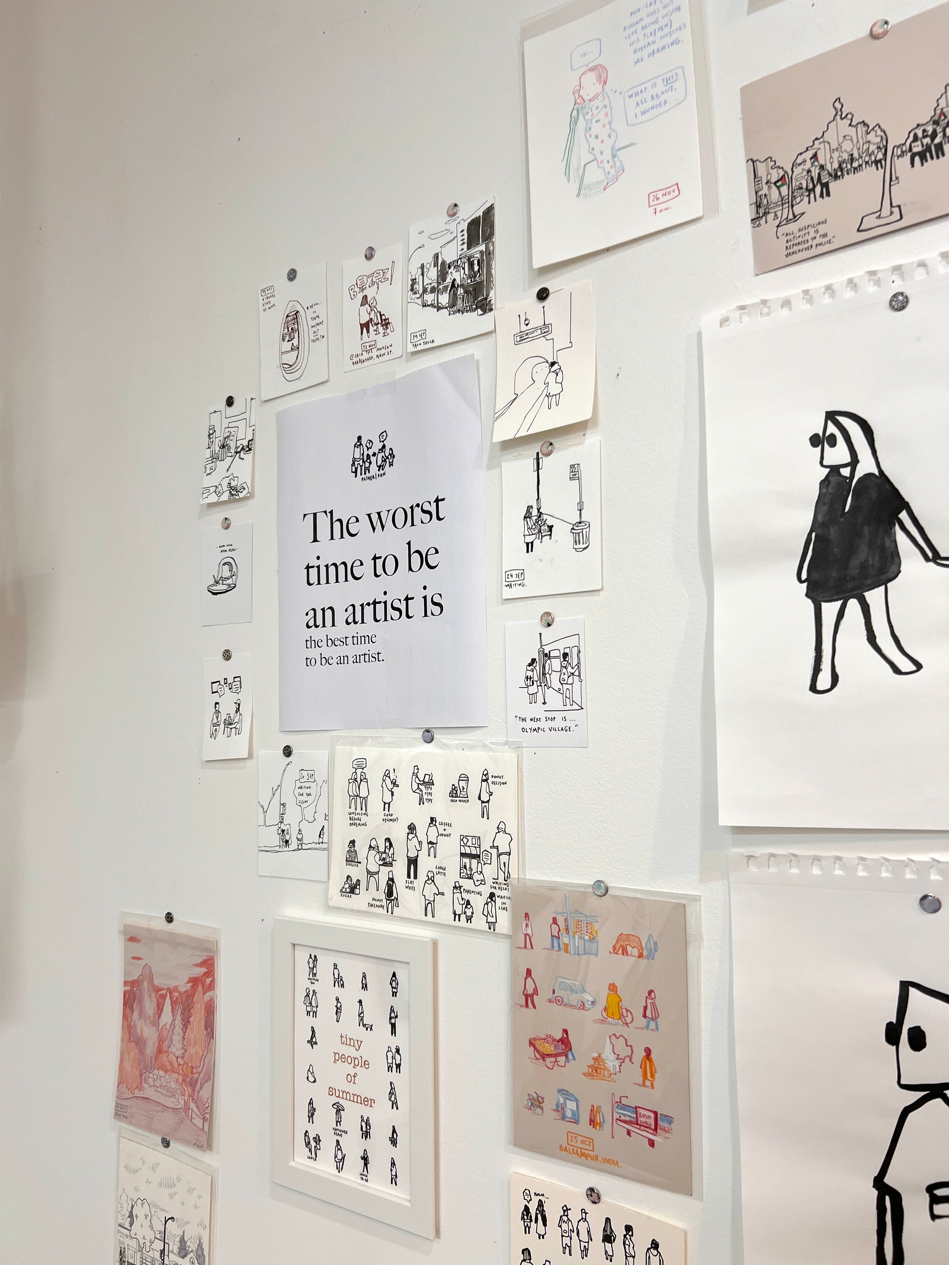 I made some sales too. There were a bunch of tiny drawings in a box labelled “$20”, and people eagerly snapped them up. This made me happy because it is not good to keep looking at things you have made, and it is wonderful that they will live in someone else’s world now.