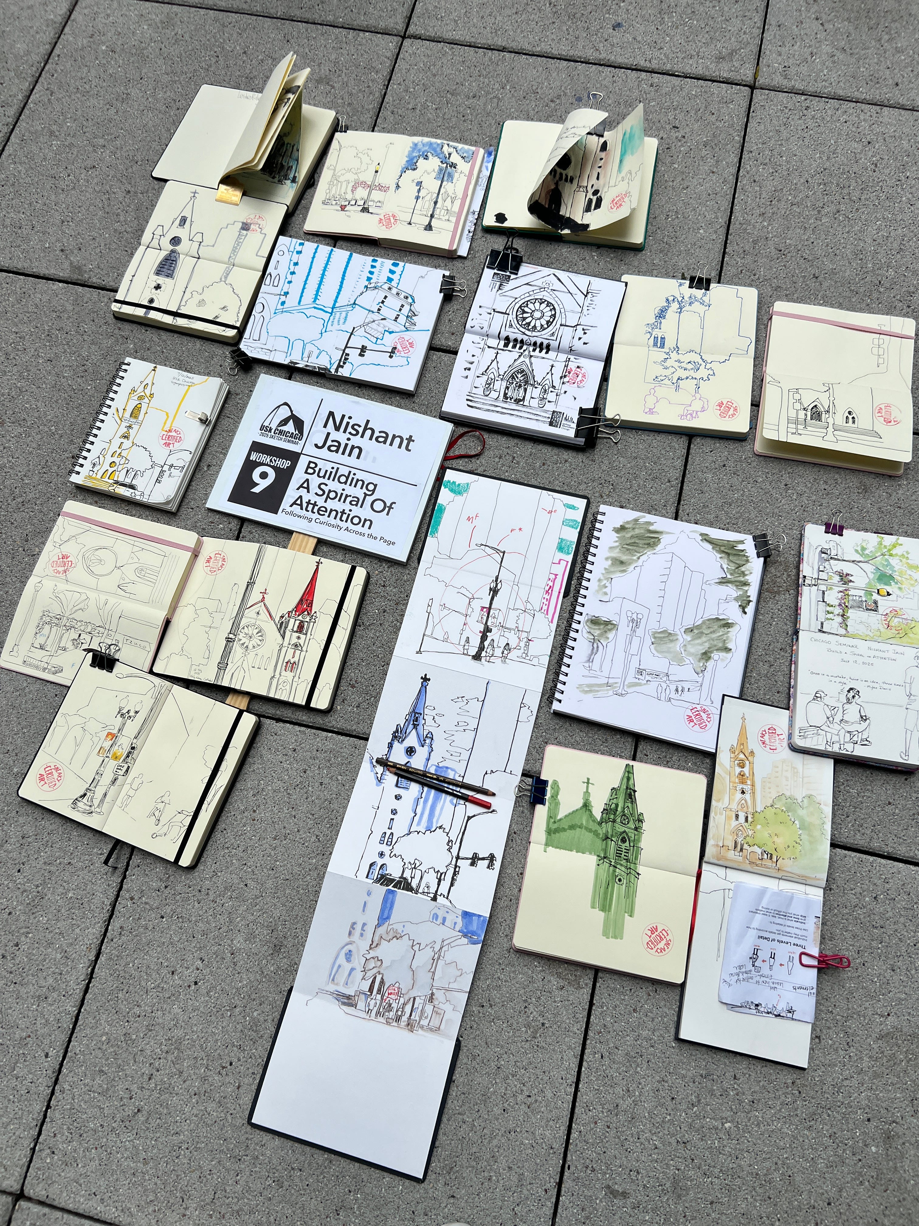 The answer (to me) is human presence. Cities, buildings, and cafes, etc. exist because of human needs. My curiosity to draw cities began with a curiosity for human activity. And so my workshops are about drawing cities, with respect to the people that occupy them.