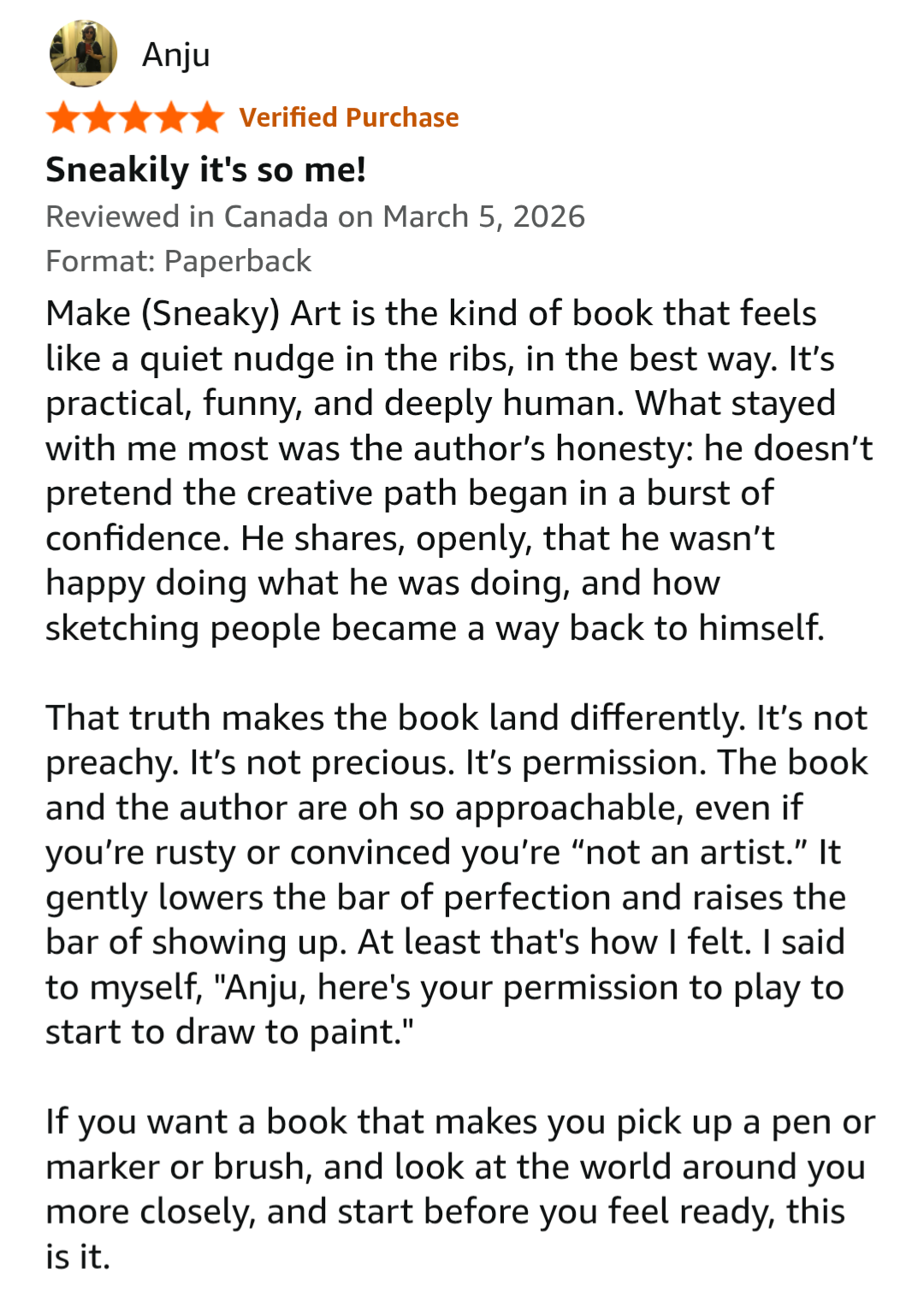 Quite randomly, I visited the Amazon page of Make (Sneaky) Art and found this delightful review: