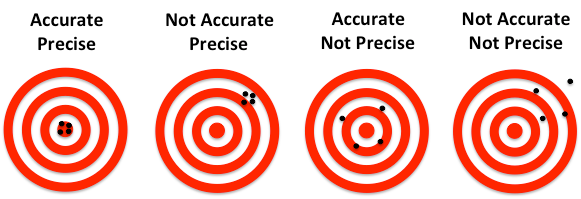 Briefly, accuracy is how exactly correct you are every time you do something. Precision is how consistent you are with your errors/biases. It is important to distinguish between the two, because optimizing for both is sometimes unnecessary or wasteful. In the case of art, in my opinion, accuracy is overrated. There are many media forms for those desiring accuracy. For example, you could take a picture. But to have style, to have distinction, to have something that is yours, you need precision. The cost function of optimizing for high precision often reduces what people call accuracy.