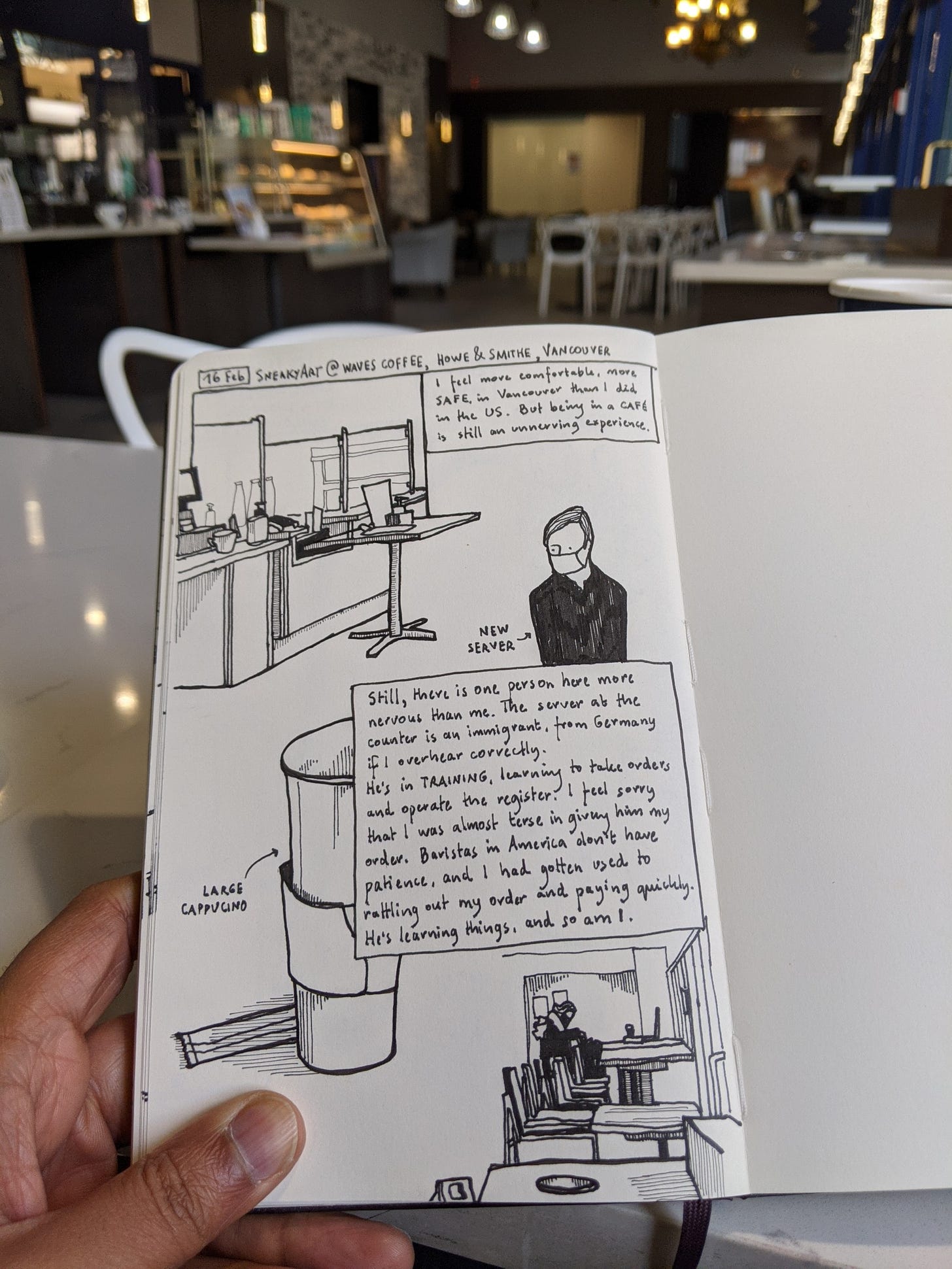 I went into a Blenz Coffee (another local chain), and sat at the only seat facing the street.