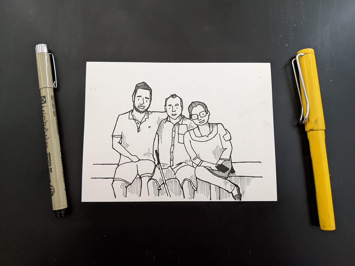 It is wonderful to be challenged. If I only ever drew what I wanted, I would stay within my comfort zone and only draw people at street corners. Over the last year, however, I have taken opportunities to draw pets, young children as well as older people, and hundreds of people of different ethnicities. These challenges pushed me to understand my own style better, and to uncover more things I could do with pure line-work. They helped me to expand my library of good lines.