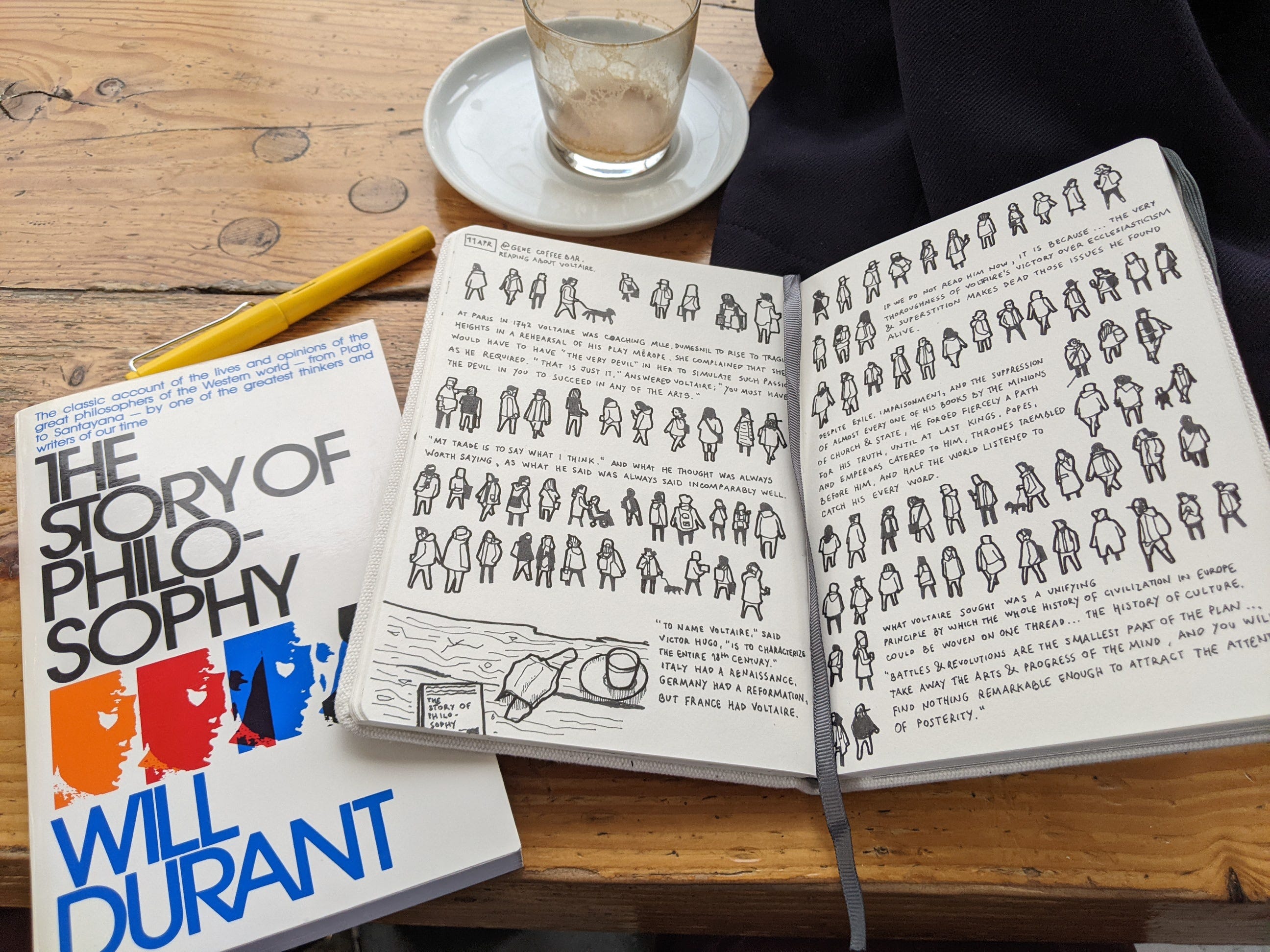 Today, I sketched while occasionally pausing to read from my current book (The Story of Philosophy by Will Durant). I am reading about the French writer and philosopher Voltaire.