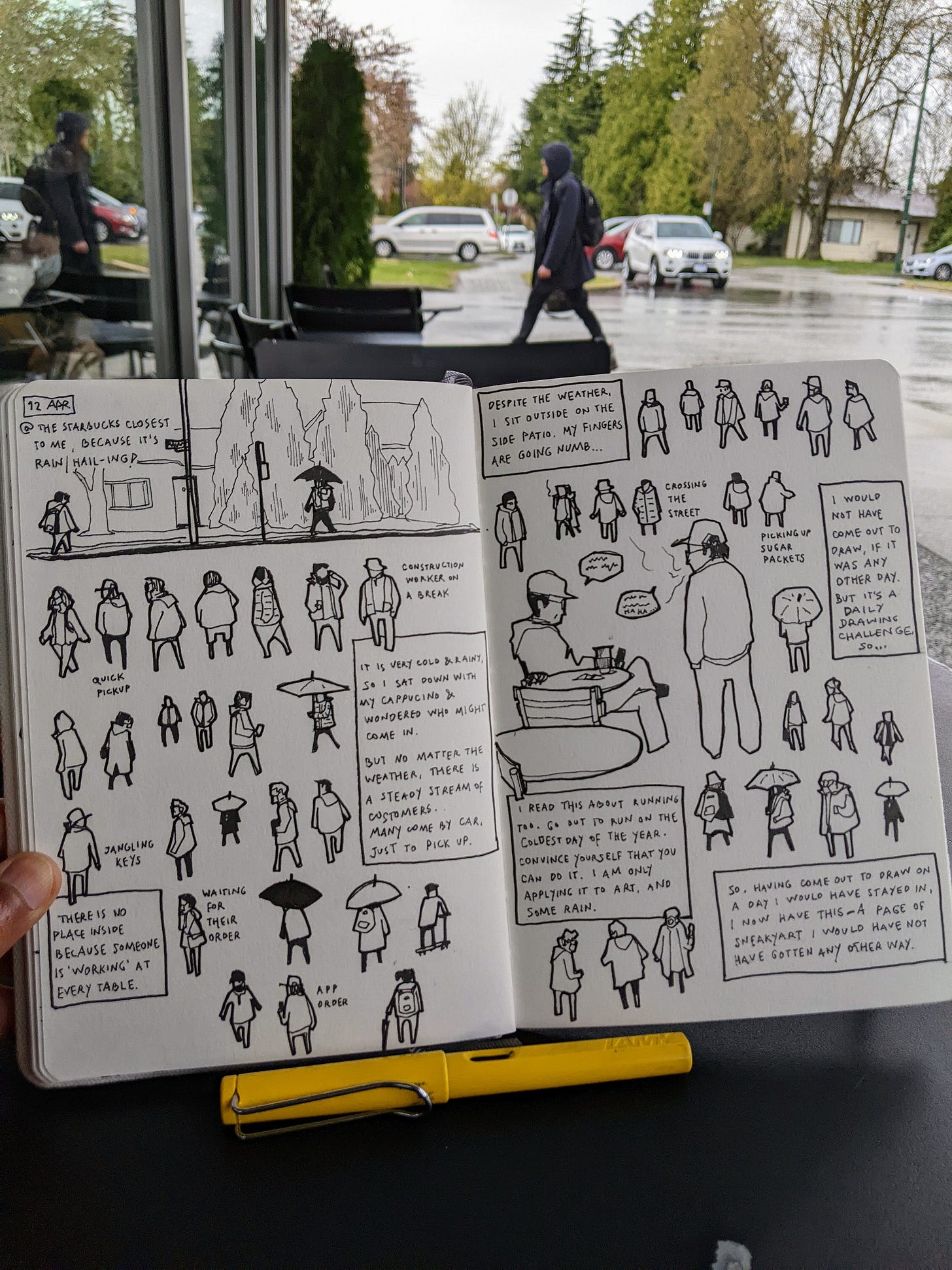 If it were any other day, I would not have gone out at all. But this is a daily drawing challenge, and that means pushing myself.