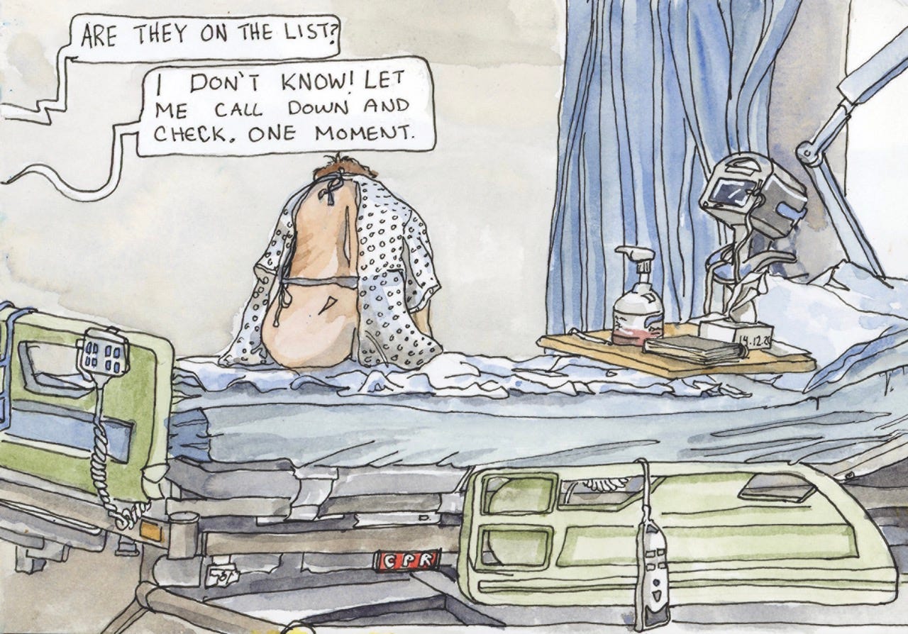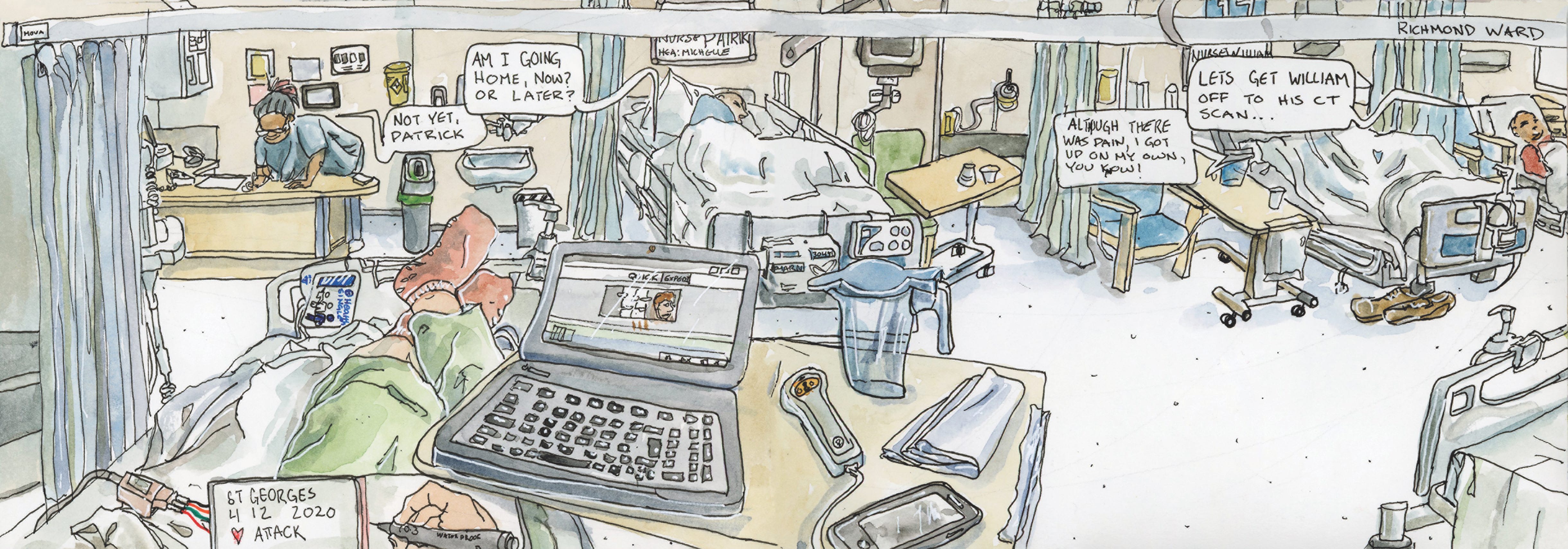 The story of how Jeff ended up on a hospital bed with a sketchbook. The time of early COVID, and the fear of the unknown virus.