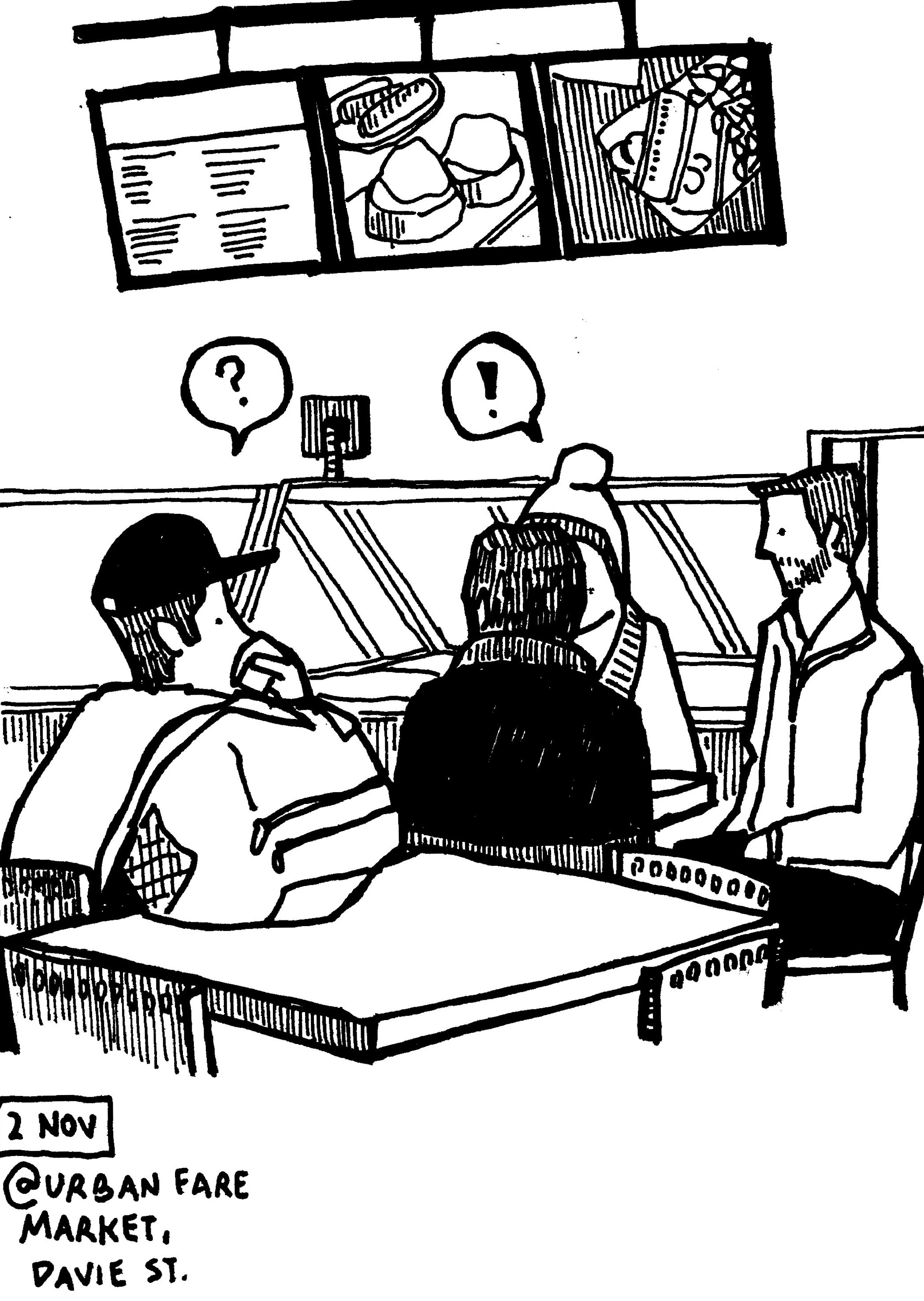 This means that I don’t get opportunities to sketch outdoors anymore. Visiting a cafe is the only option. I appreciate cafes even more than before. I don’t always want/need a coffee, but I consider it the price of admission to a warm and dry space with a chair, a table, and a view.
