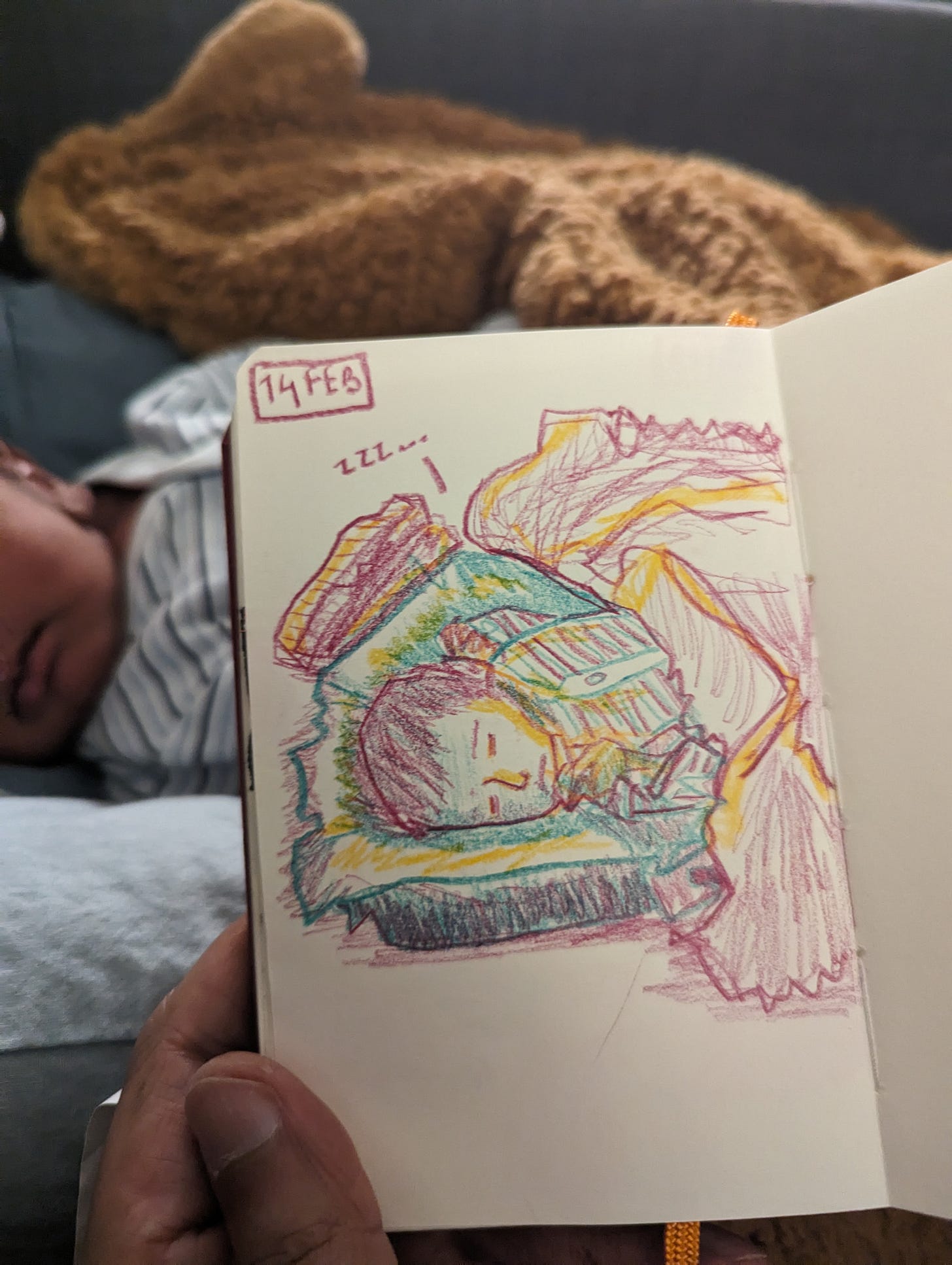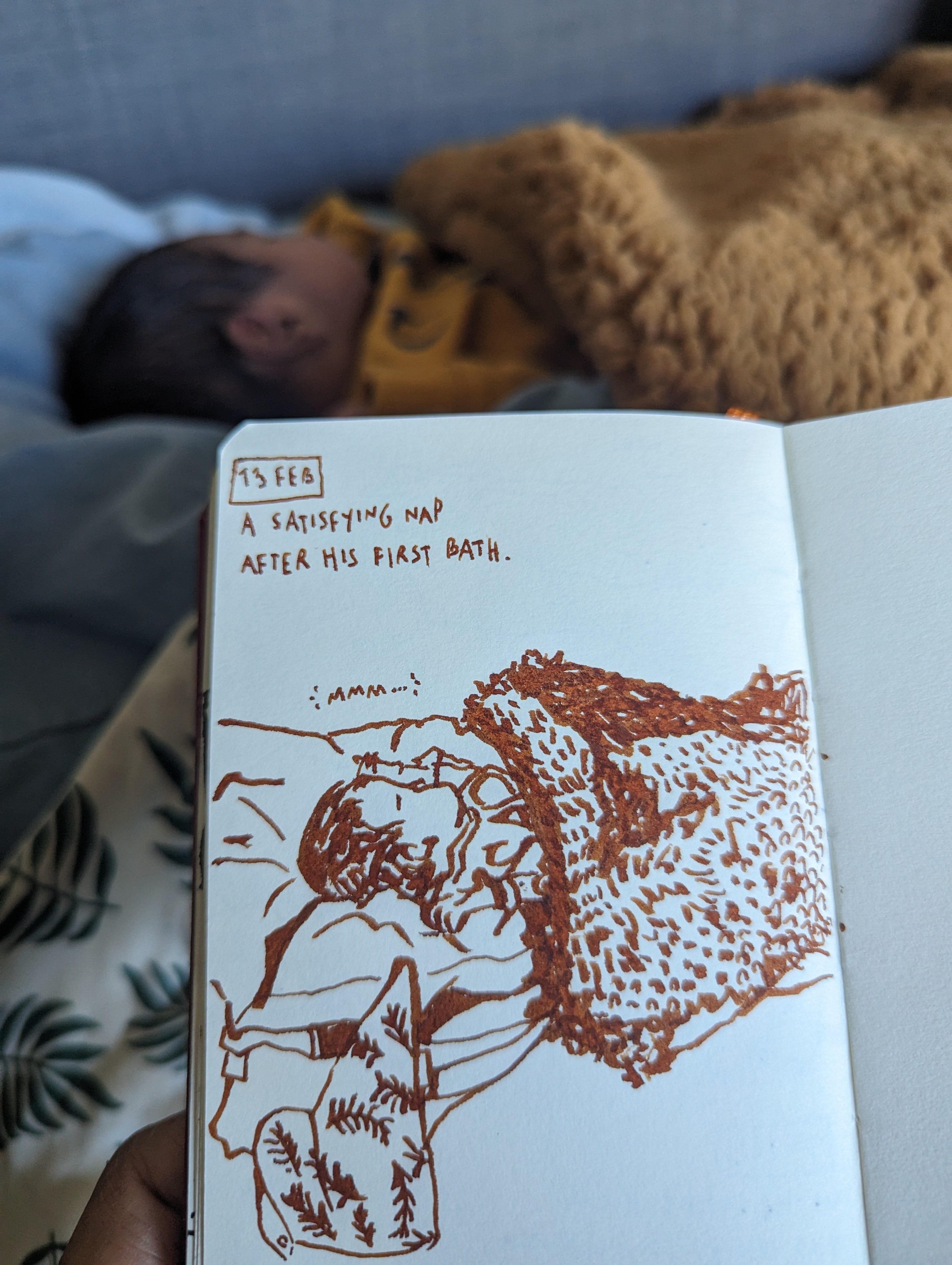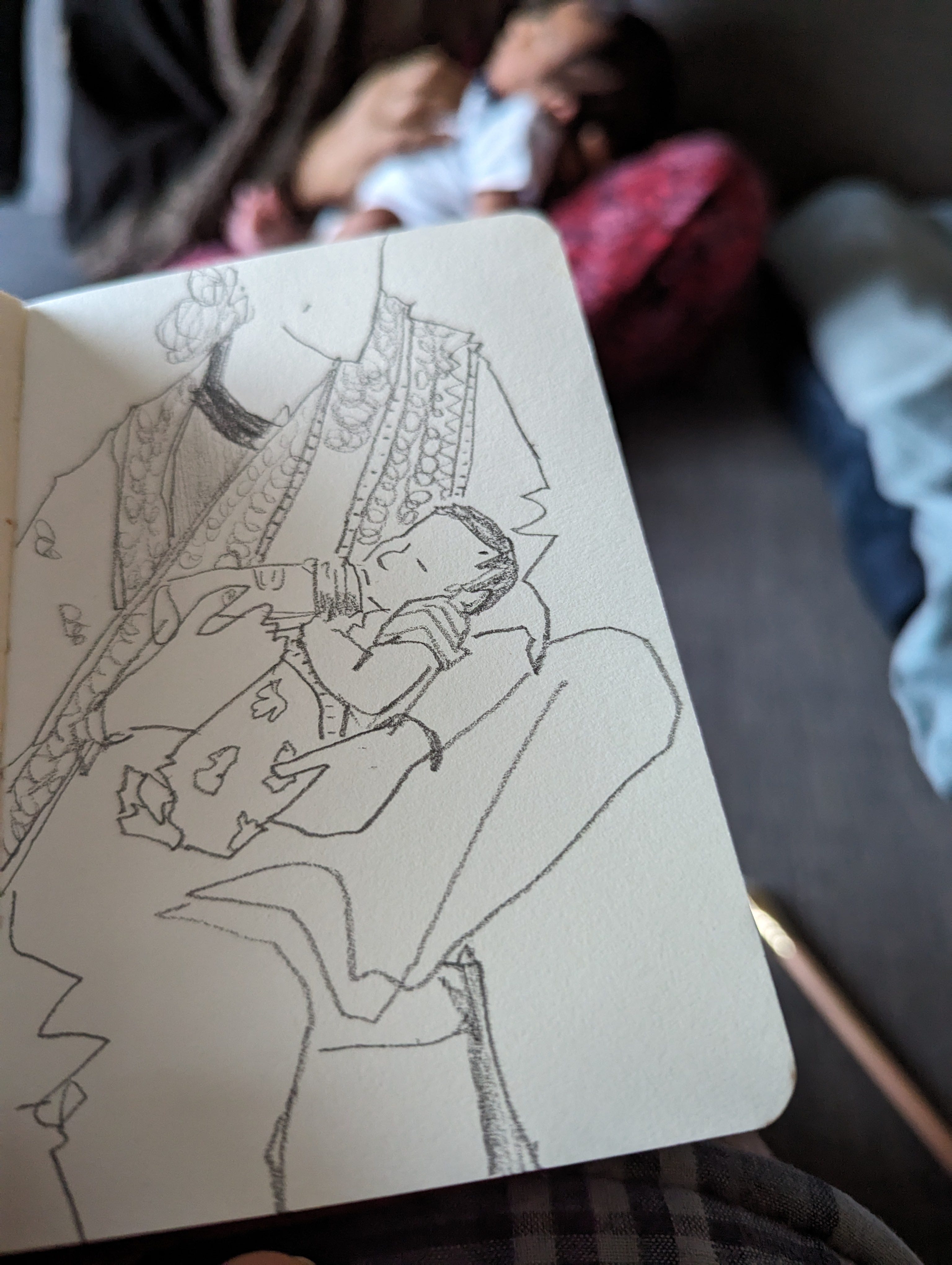 Last week, I shared the story of bringing him into our world. In today’s post, drawings from the week and some thoughts from watching Rohan sleep. Scroll to the bottom to grab your free seat at the next drawing workshop.