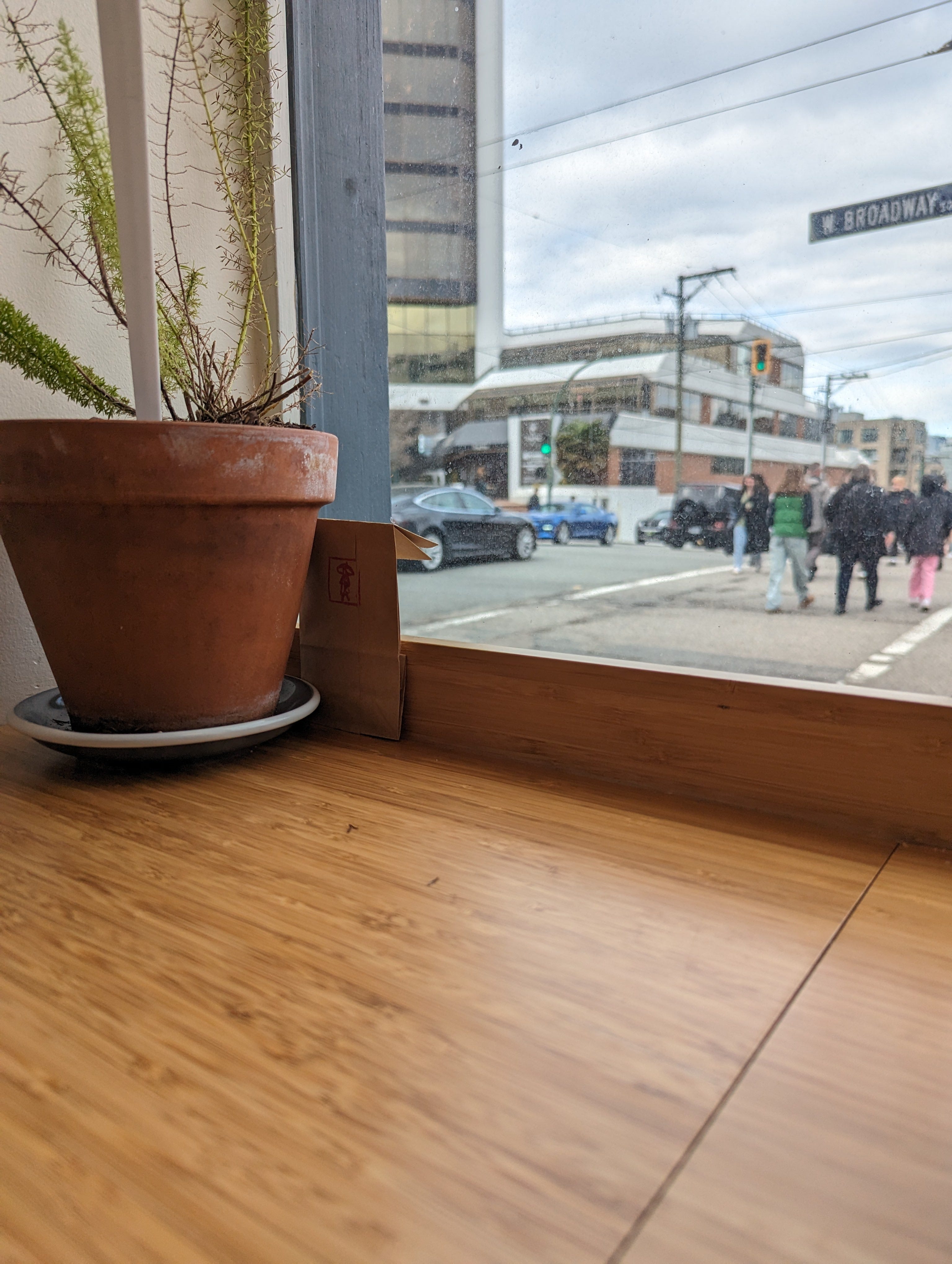This week I was at the Elysian Cafe on Broadway, watching pedestrians at the intersection.