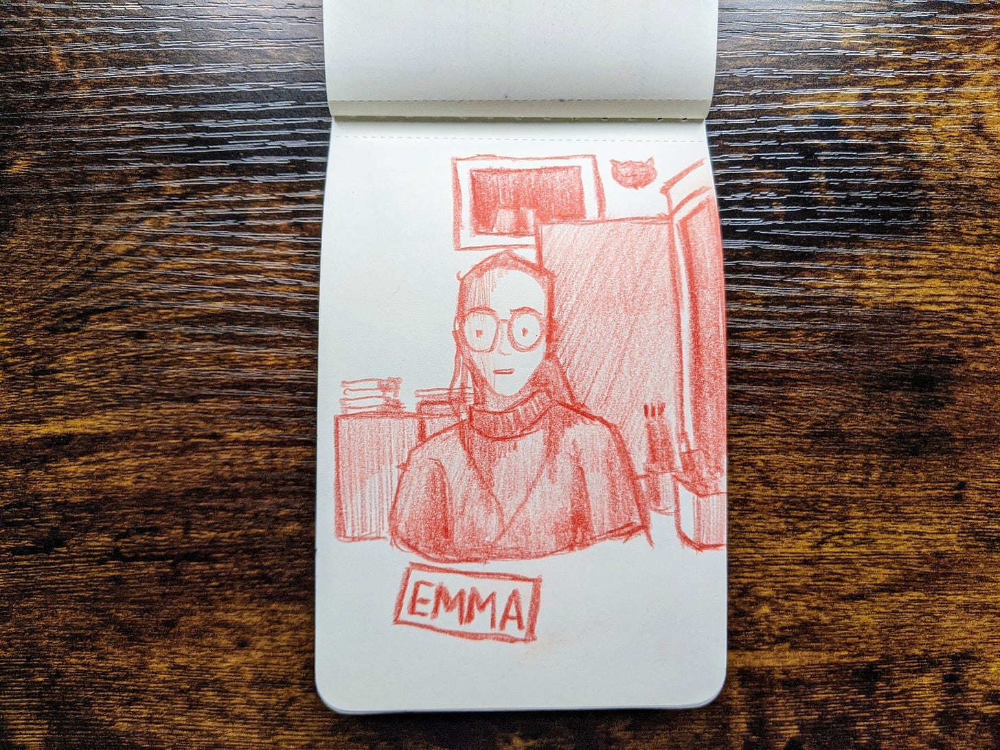In the audio post-script above, Emma and I unwind from our long conversation while drawing portraits of each other. Here are some of the subjects we touch upon -