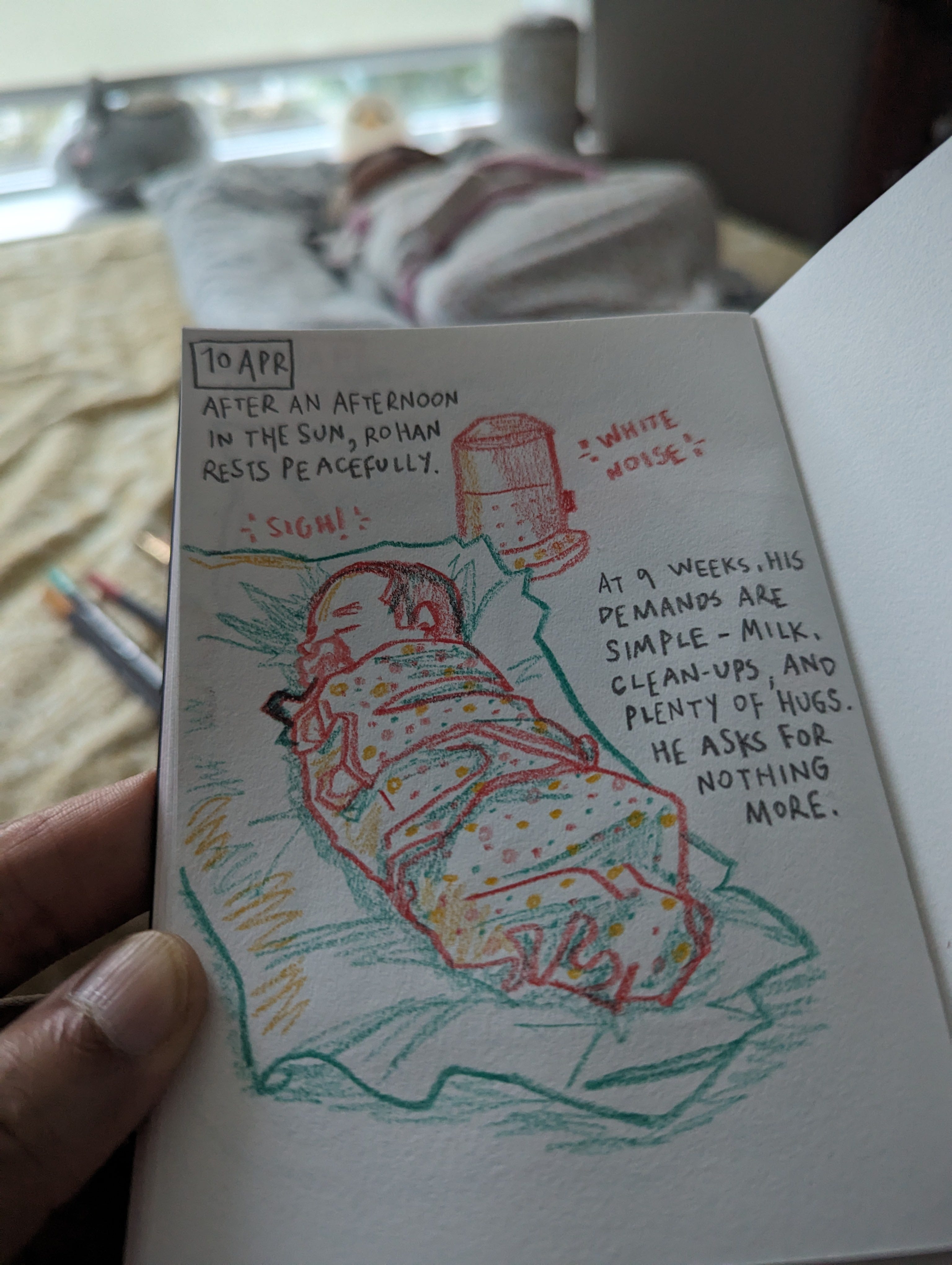 We are doing more Tummy Time with Rohan. Tummy Time is essential for newborn development as it encourages them to raise their heads which strengthens their neck and shoulder muscles. I suppose that makes Rohan a gym bro and this his first workout pic.