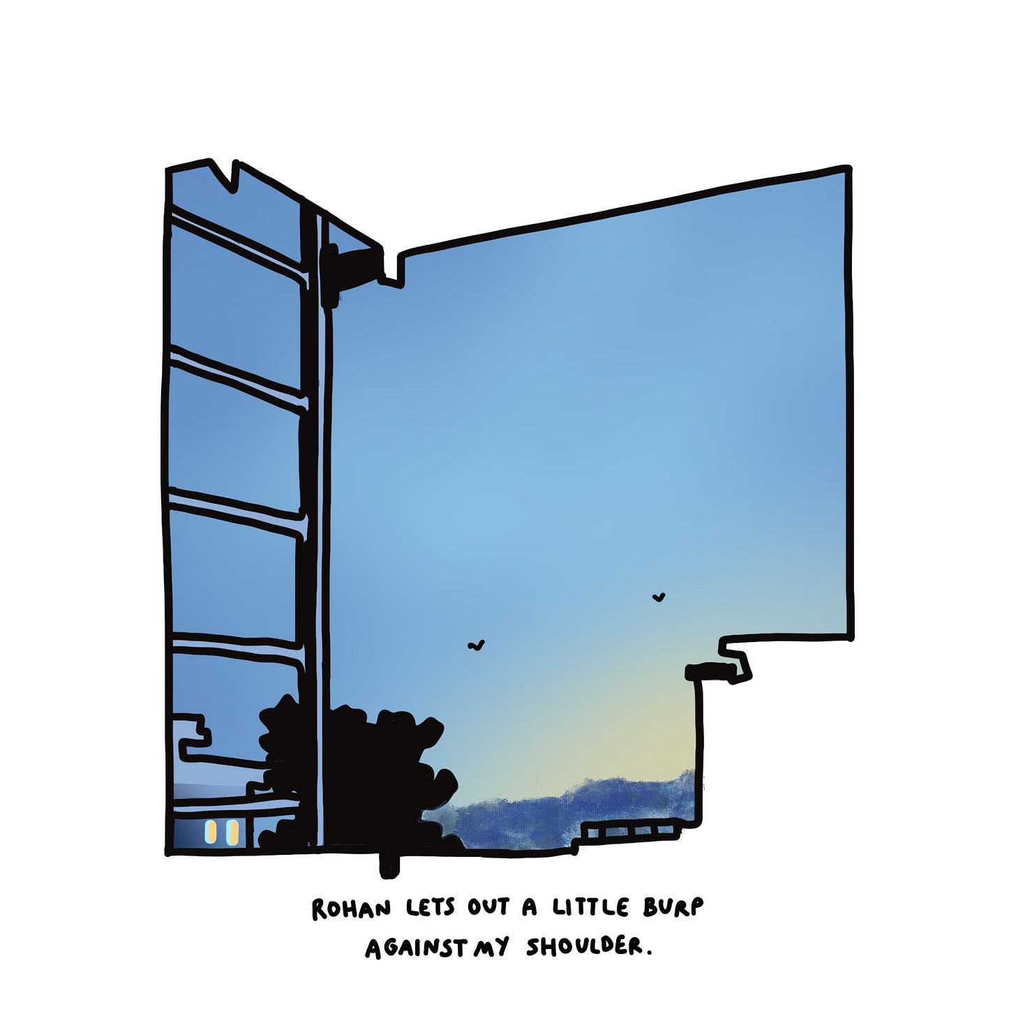 The Morning Sky out of the Window with Rohan on my Lap Cooing Softly