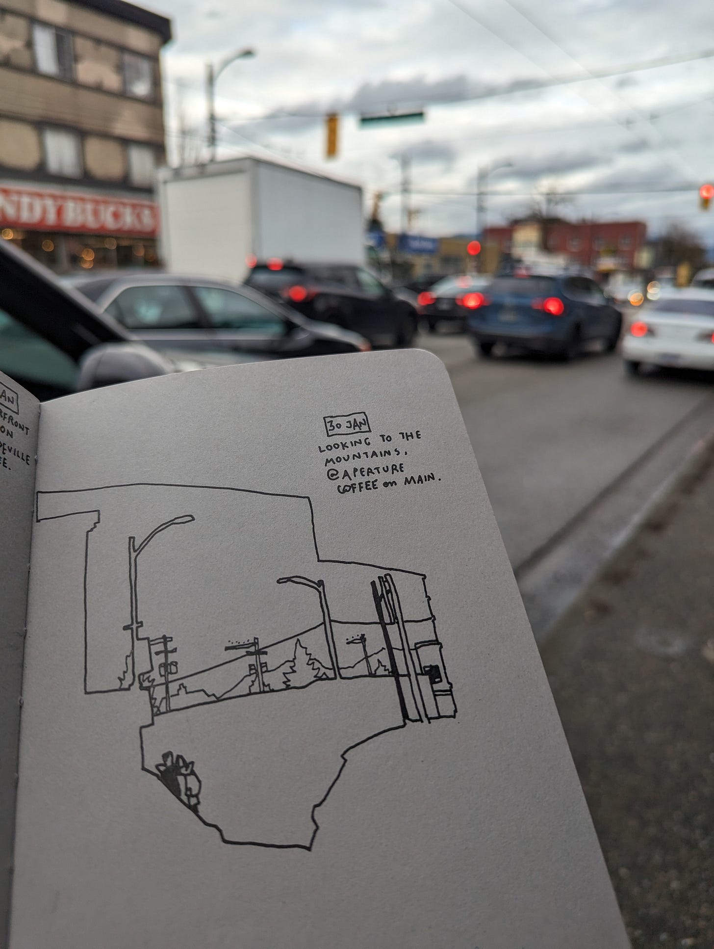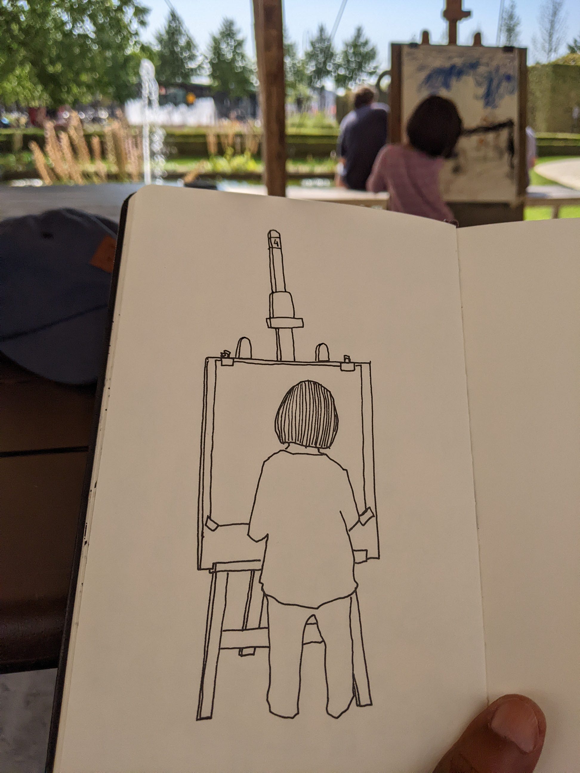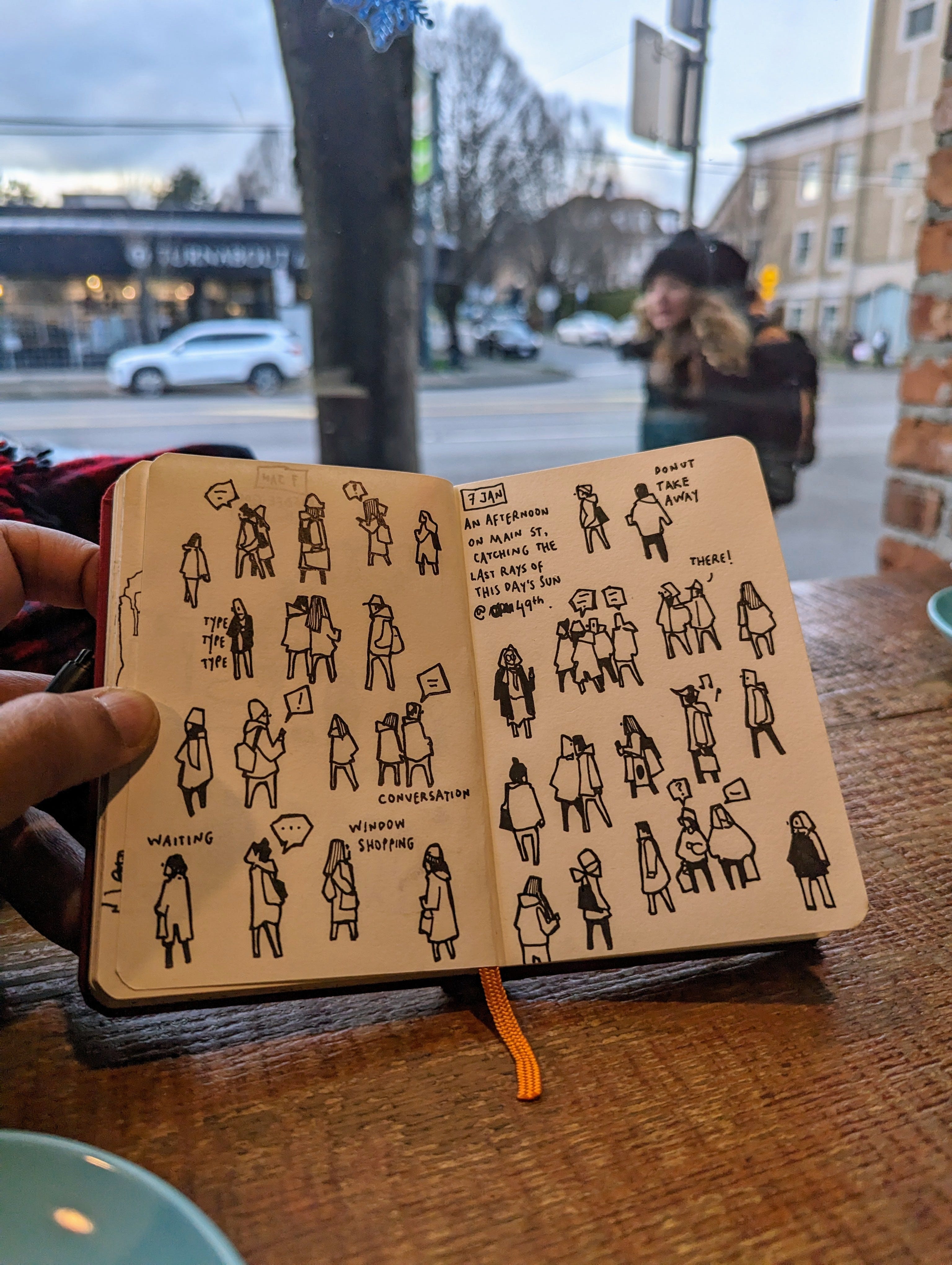 I was early in my sketchbook habit when we moved to a small town in the middle of the American Midwest. I felt like an outsider. It felt like everyone was staring at me wherever I went. So I kept a tight grip on my sketchbook when I sat down in the park, at the farmer’s market, in the local cafes. It was my crutch. It allayed my social anxieties as an immigrant and gave me a reason to claim space in a world that was utterly alien to me.