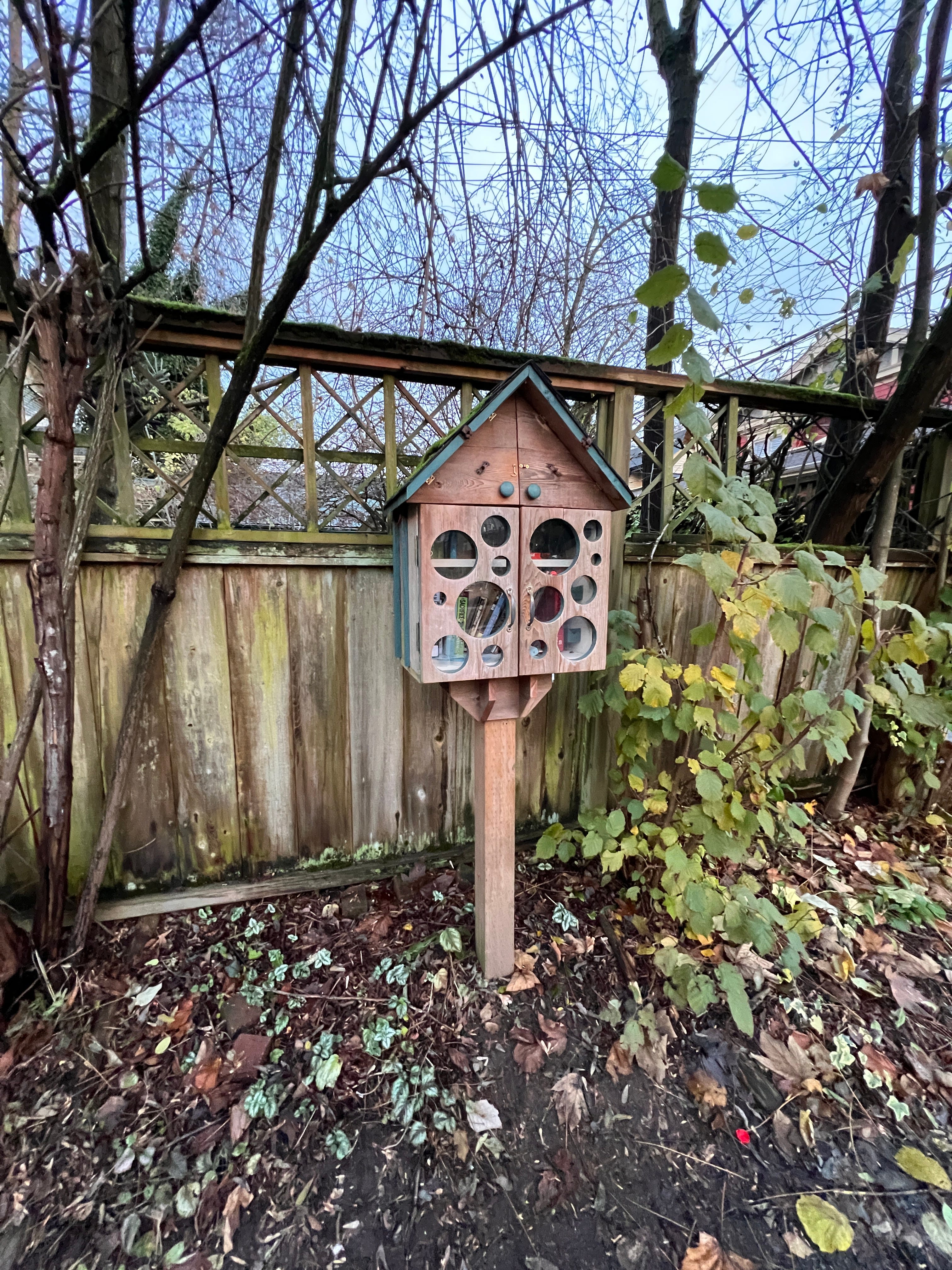 This is the most beautifully crafted LFL I have seen so far. You get a glimpse of what’s inside without needing to open it! It is outside the wall of the property but a feet in from the sidewalk under the shade of trees (when it isn’t winter). I found it only because I was unable to get parking outside my gym one morning and had to drive into this inner street for a spot.