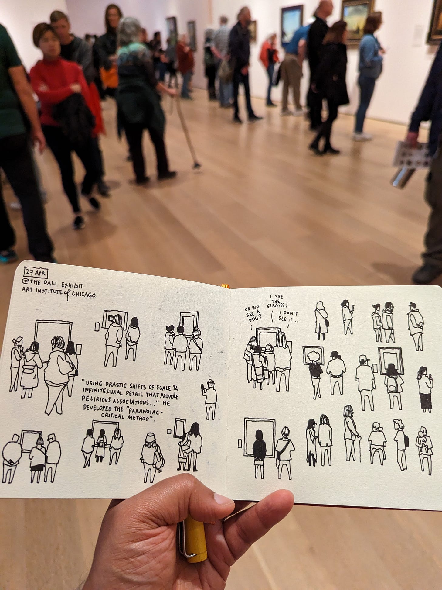 A couple of years ago, after giving me a lovely tour of the Museum of Modern Art in New York, dear friend Samantha Dion Baker left me alone to draw. I walked up and down, and through all the rooms, until I was sitting on a bench, a little distance from one of the most famous paintings in the world. Drawing the crowd around it, this question popped into my head -