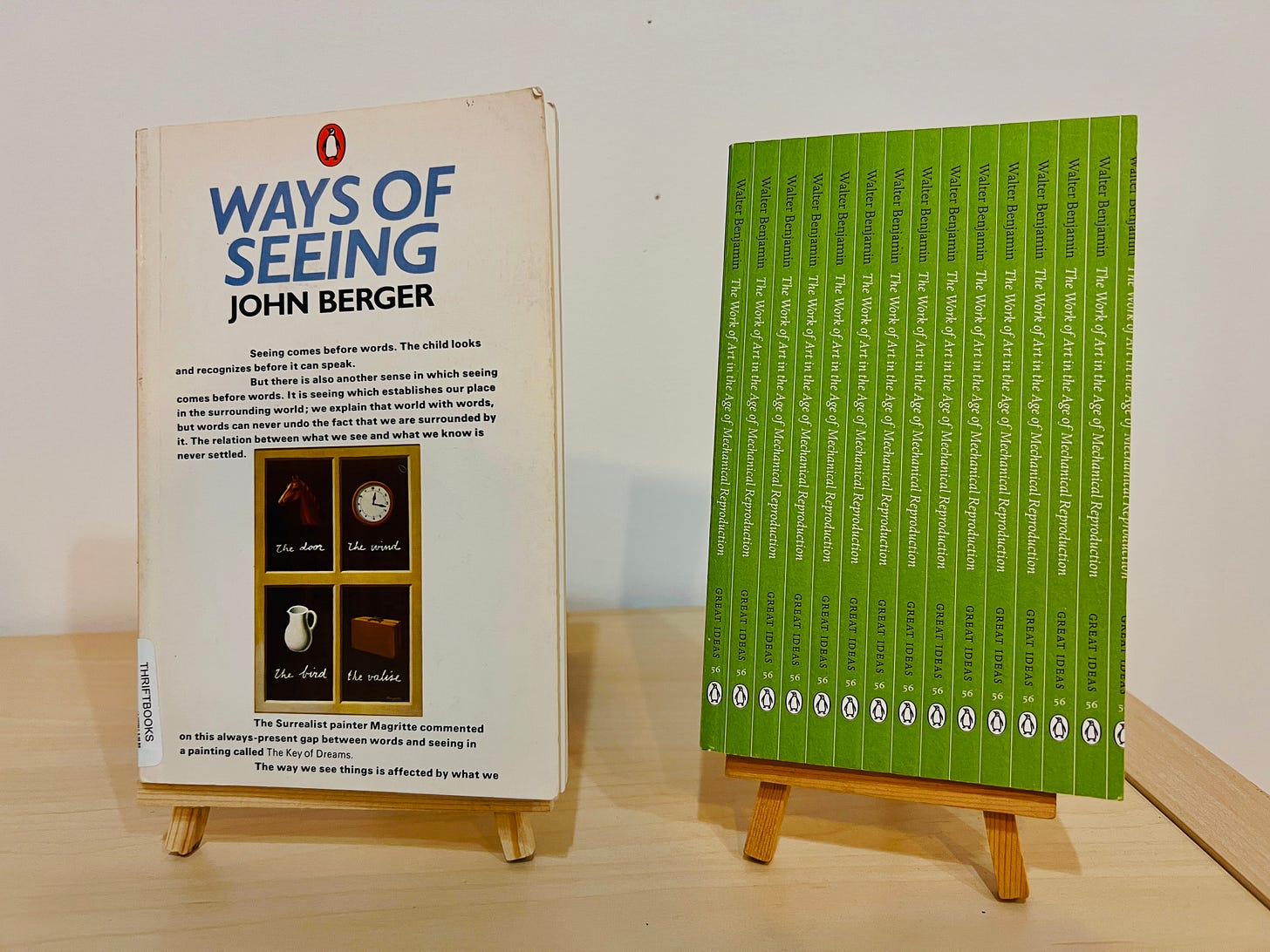 Benjamin wrote about the impact of technology on how we experience art, and the role it plays in our world. Berger, while referencing Benjamin in the first essay, for the most part thinks about how art connects with class and capitalism.