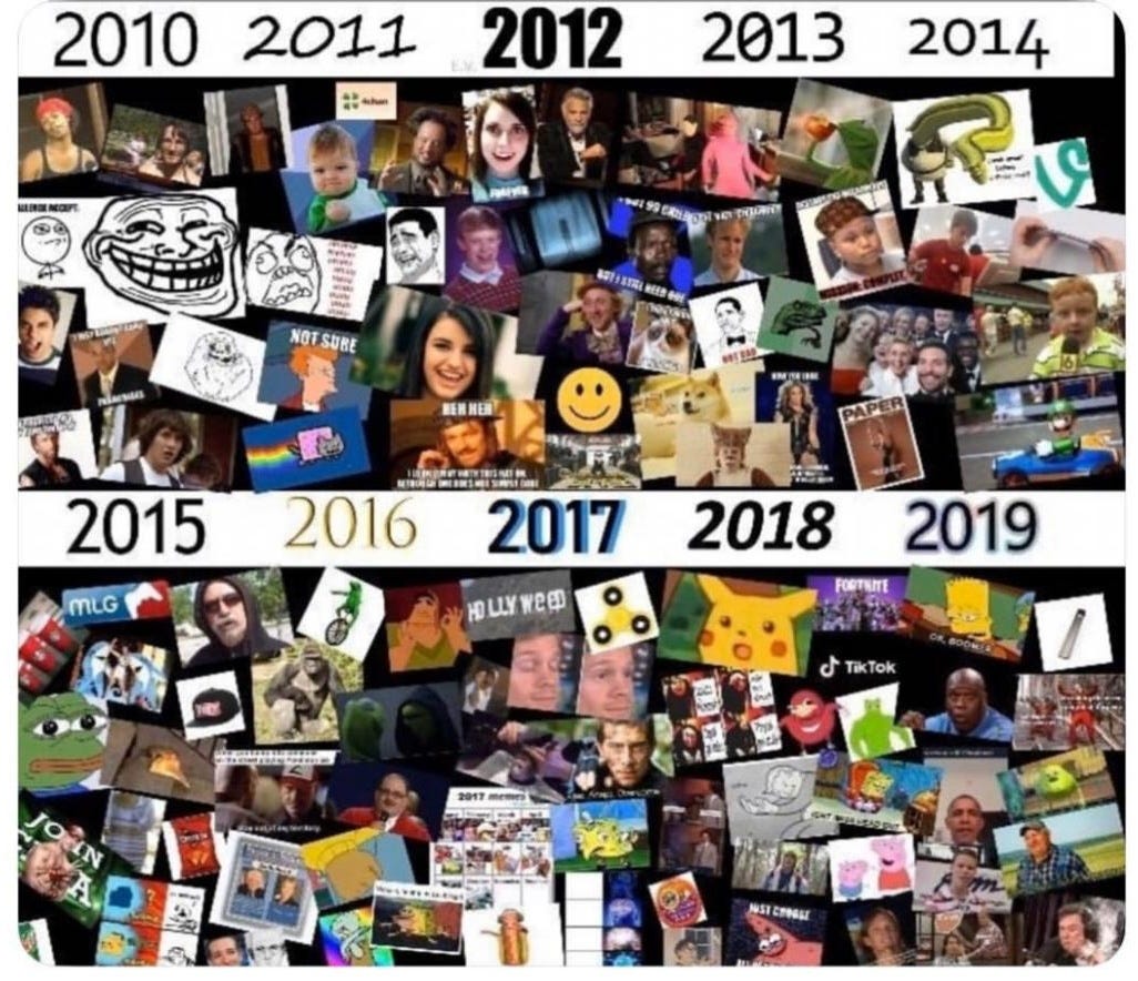 In the early 2010s, memes started spreading all over the internet. I was immediately fascinated - that a character or scene from a film, tv show, or advertisement in one part of the world could make sense to someone in another part of the world, that an image could be so definitive of a mood/feeling/vibe that it transcended borders of nationality, language, and pop culture.