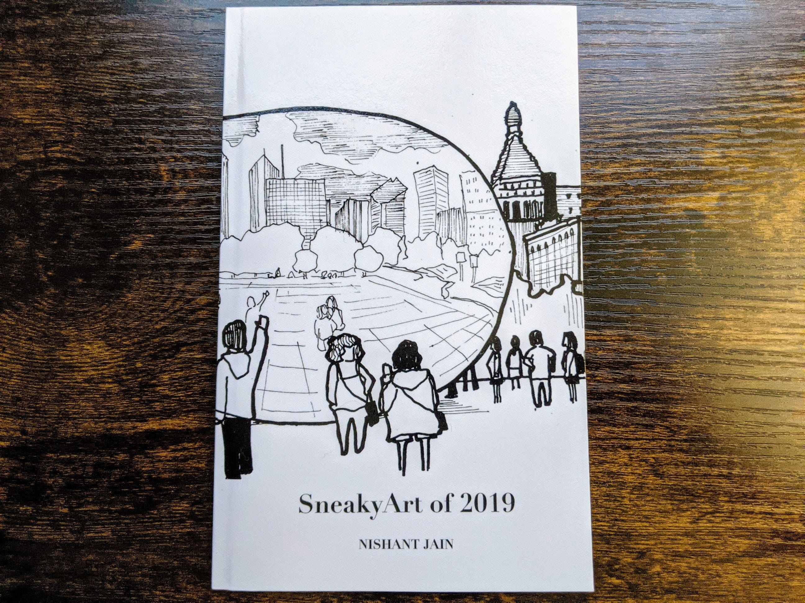 I am also giving away 2 copies of my self-published book, SneakyArt of 2019. I made this book on a whim, to try out a new self-publishing service. I did not realize then that it would become a final record of the world before COVID.
