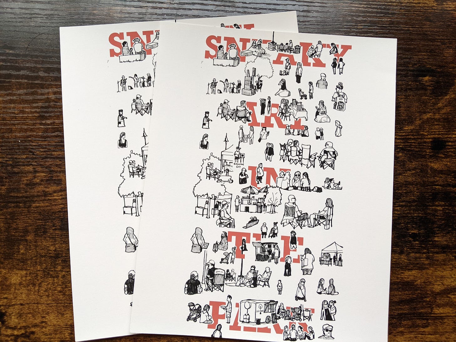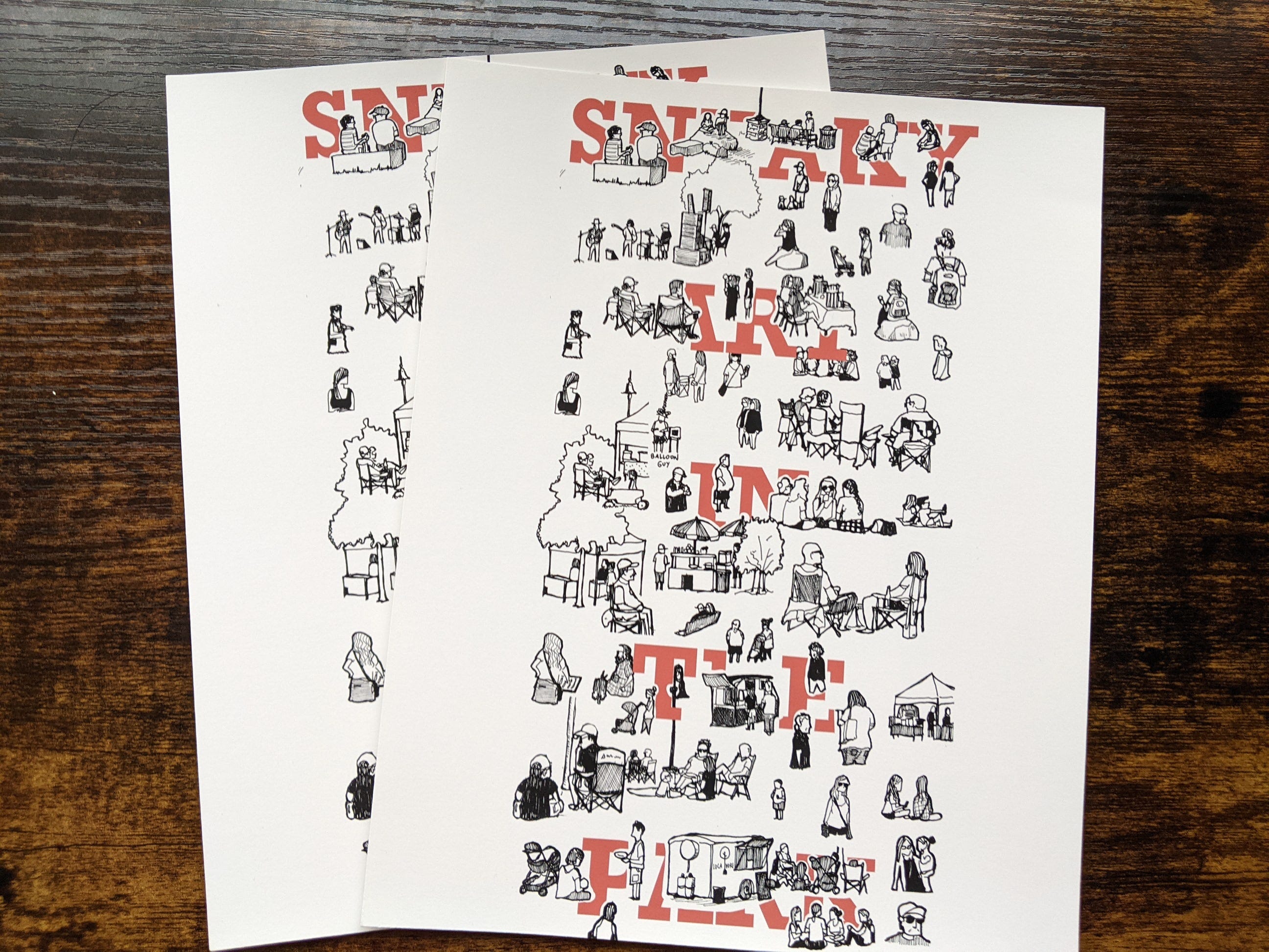 I made a 6 ft tall poster of this print for when I sold SneakyArt at the Artist’s Market in Eau Claire in 2019. Isn’t that a great way to attract customers? A couple of people were able to spot themselves on the poster, which earned them a special discount on my book!