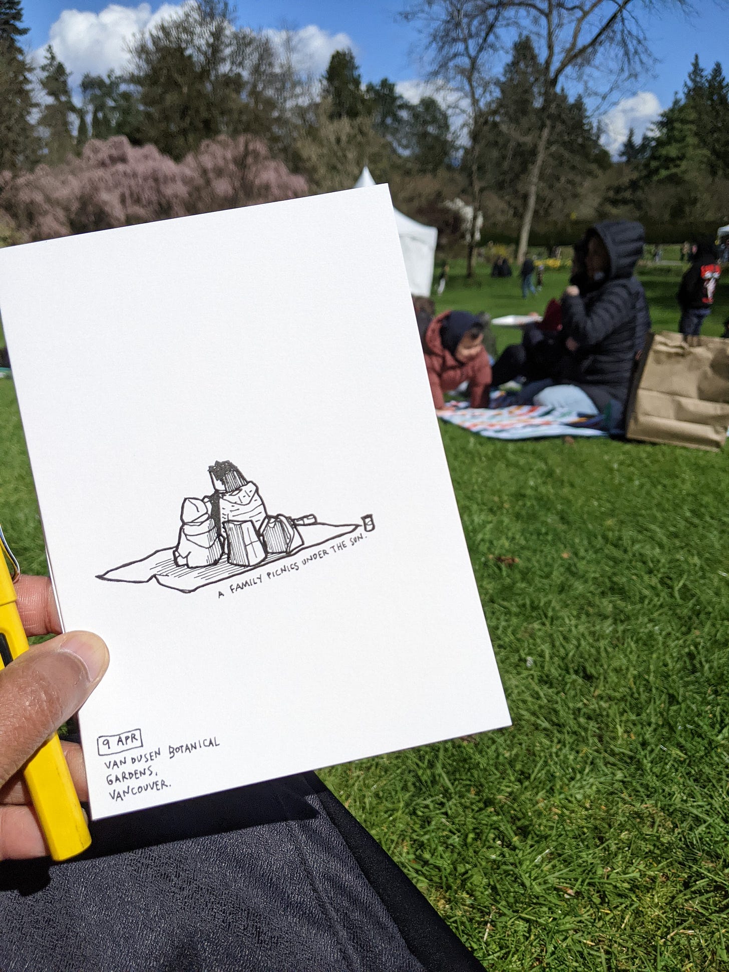 Giveaways last week included an original SneakyArt drawing from me. I drew it yesterday at the Van Dusen Botanical Gardens.