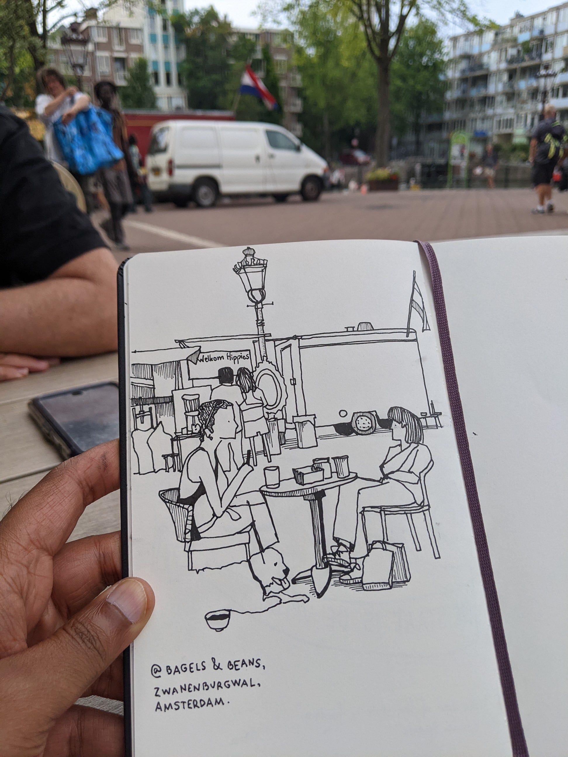 I met with urban sketchers in Amsterdam. Willemien and Liora walked me around the area, explaining local history and the origins of the city.